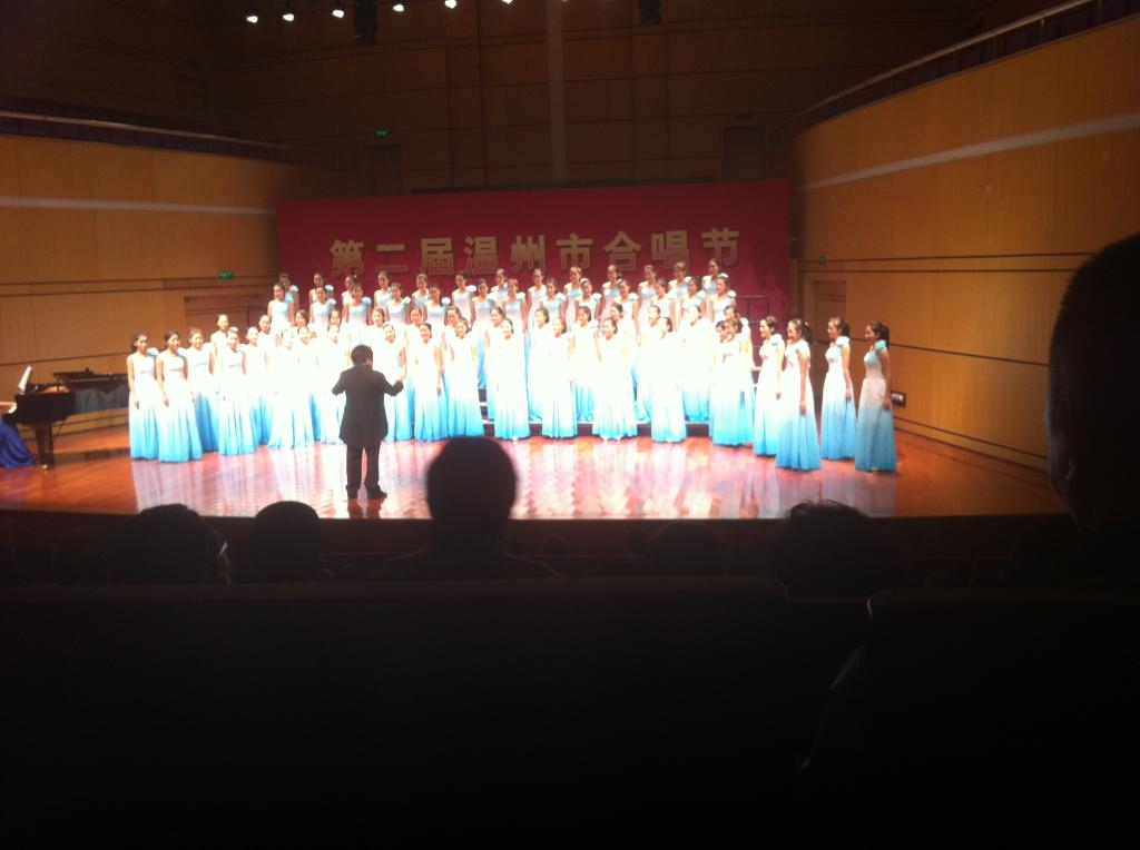 温州市合唱节每三年一届,是我市合唱界最高规格的赛事,昨天我市各地26支合唱团分下午和晚上两场,展开了激烈的角逐,千余名演员以讴歌祖国为主题,以喜迎十八大的情怀,激情演绎了一曲曲和谐颂歌,我院女生合唱团以清新、动情的演唱赢得了评委的一致好评,荣获金奖。