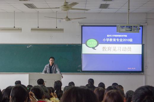 见习动员大会的召开体现了学校、学院、小教系老师们对小教系10级同学的重视,相信在老师们的关爱和呵护下,同学们定能高质高量地完成见习任务,行未来教师之风范,树温大师范之形象。(通讯员:陈汀)