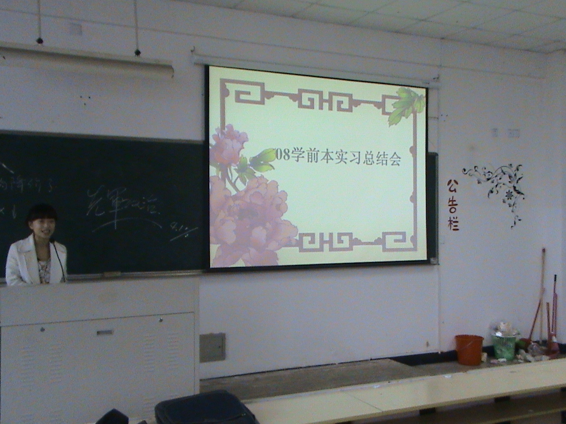 1128下午1:30,学院教学科组织08学前本实习班级在3号楼301教室召开实习总结大会。出席会议的有学前系主任曾国老师、教学科胡孙贵老师、08学前本大部分同学以及部分09学前本同学,会议主持由08学前本曾晶晶同学主持。