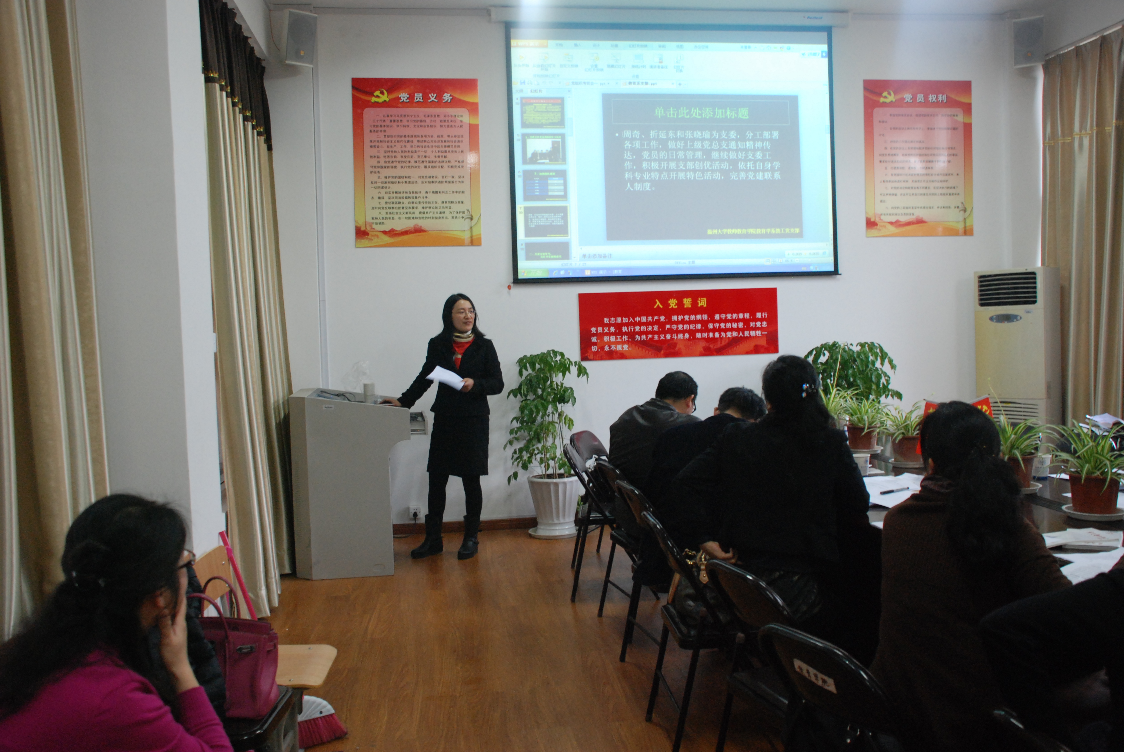基层党组织建设创新是党组织与时俱进、永褒活力的源泉。williamhill官网党总支高度重视基层组织建设,坚持“一部一品”,扎实推进。一年一度的党支部考核交流会于3月20日举行,8个党支部通过PPT进行展示,就基层组织建设、支部战斗堡垒作用、党员教育管理、发展党员工作、群众工作等五个方面进行了总结,重点对本支部的特色进行汇报,教育学系教工党支部以服务地方为特色,以家庭教育公益讲座为载体,在温州教育界享有胜誉;心理学系教工党支部指导的微笑联盟、心理测量工作坊,走出了一条服务社会的新路子;学前系教工党支部以艺术教育为切入点,打造儿童剧和“红歌背后的故事”品牌,在服务地方和科研教学相结合、党课教育和艺术教育结合上找到契合点;小教系教工党支部,在师范生技能培养方面,利用语言、书法工作坊等平台,在普通话推广、师范技能竞赛、书法比赛等领域取得了累累硕果;教技系与实验中心党支部开展的师生支部共建,多媒体技能应用与专业教育等工作,深受学生喜爱;宏德幼儿园党支部,党员教师群策群力,促进幼儿园硬件和软件发展;研究生党支部结合研究生自我管理和教育、科研与实践,开展了大量的工作。通过展示,党支部的战斗堡垒作用非常显著,凝聚了我院研究生合力。