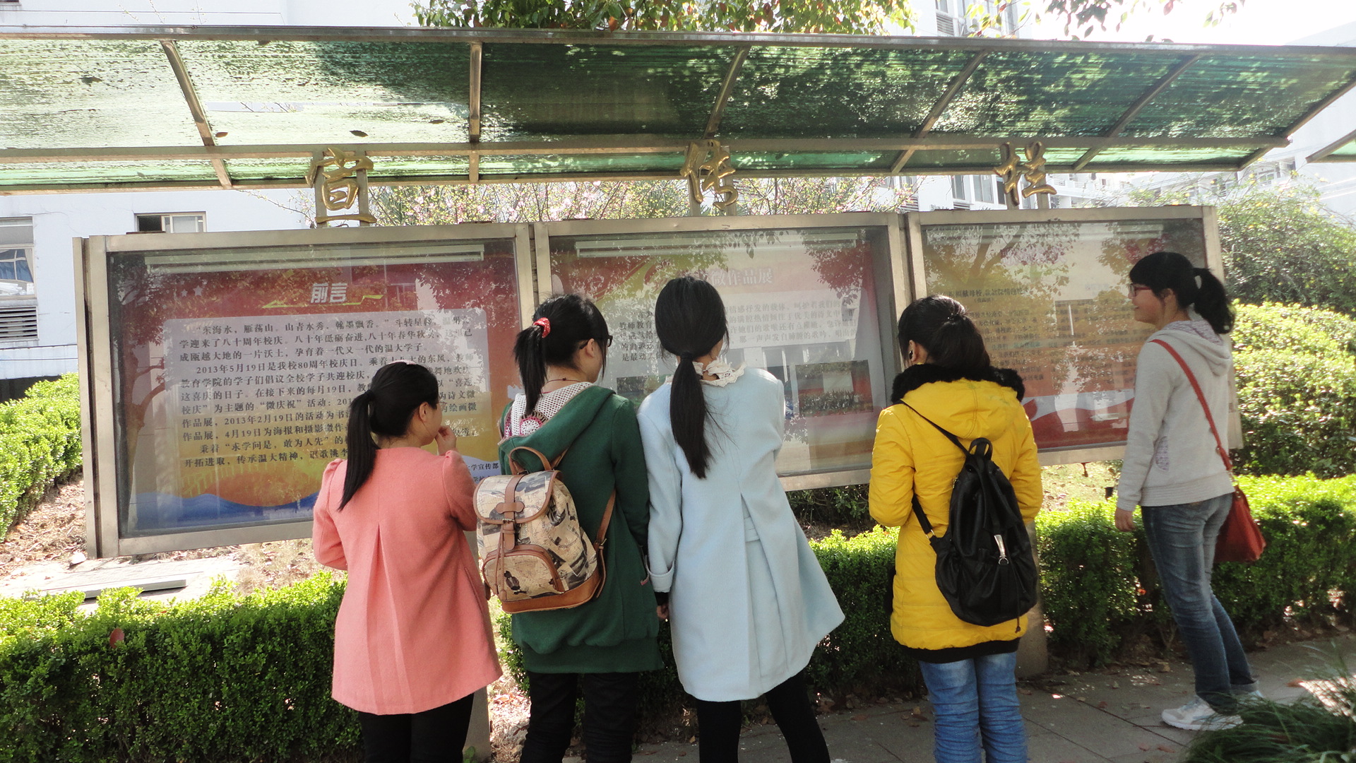 为了迎接80周年校庆的到来,我院开展了“校庆号微庆祝活动”。我院学子们在2012年12月至今年5月期间的每月19日,以“喜迎校庆”为主题开展微庆祝活动:2012年1月19日的活动为诗文微作品展,接下来,学院还会在每月19日举行书法微作品展、摄影微作品展、诗歌朗诵等微校庆活动。近日,我院学子校庆微诗文展在北校宣传栏展出,取得了良好的反响。许多师生驻足观赏、品评。