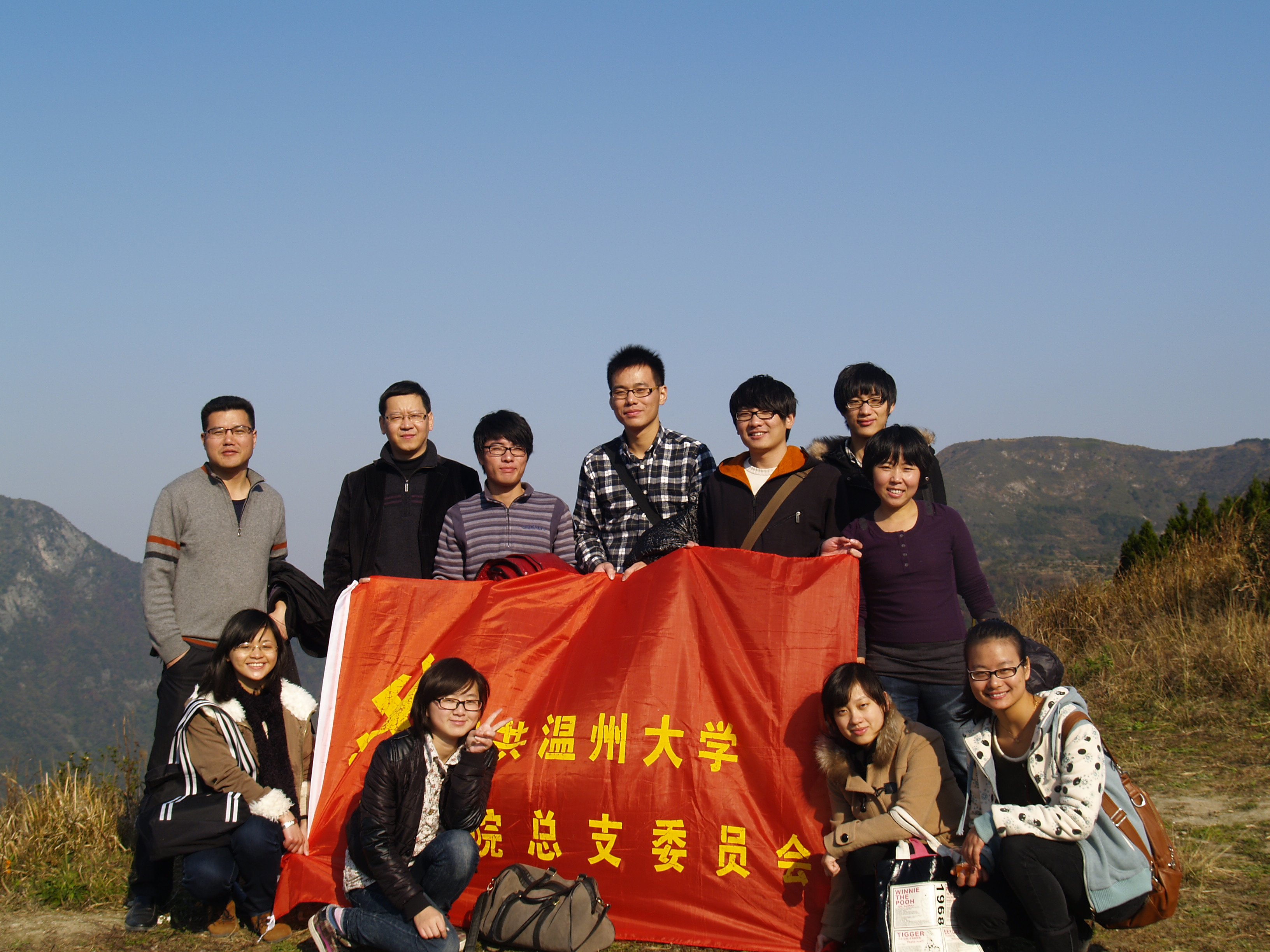 12月19日下午,我院心理系教工支部与学生支部开展支部结对共建活动,联合开展了一次别具特色的组织生活。来自心理系教工支部的郑信军和胡瑜等党员教师与心理系学生支部的全体师生党员一行12人共同攀登大罗山。一路上,师生党员共赏大罗山的秀美风光,你一言我一语,师生零距离交流,探讨自己工作、生活中的各种问题。虽然两个多小时的攀爬对于久未锻炼的我们是一个挑战,但是师生其乐融融,足够消除疲倦。