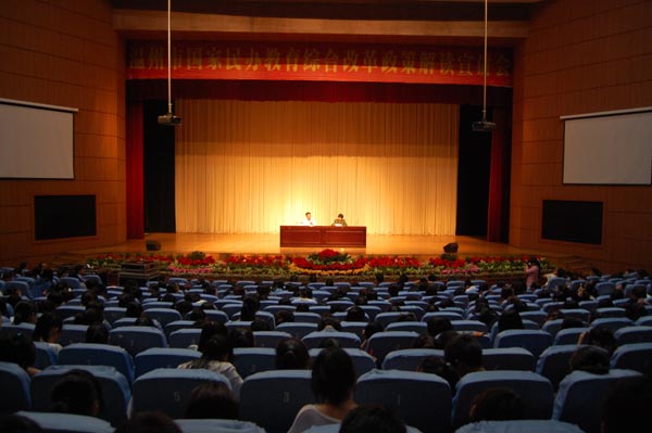 受我校邀请,市教育局薛昭处长在招聘会前为全校毕业生开设《温州市国家民办教育改革试点政策解读》专题讲座,讲座在大学生活动中心演艺厅举行,现场座无虚席,周冀副处长主持讲座。薛昭处长详细介绍了我市民办教育取得的发展业绩、当前的改革背景与改革的主要措施。他结合毕业生的关注热点,重点阐述了到民办学校就业的新举措,例如民办学校教师享有与公办教师一样的社保待遇与同等的退休费,统一接受人事代理并享受人事代理的各种服务,教师的最底薪资不低于公办学校的70%,民办教师可考公办教师编制并连续计算工龄与教龄等等。通过政策宣讲,毕业生们增进了对民办教育就业政策的认识,坚定了到民办学校就业的信心与决心。