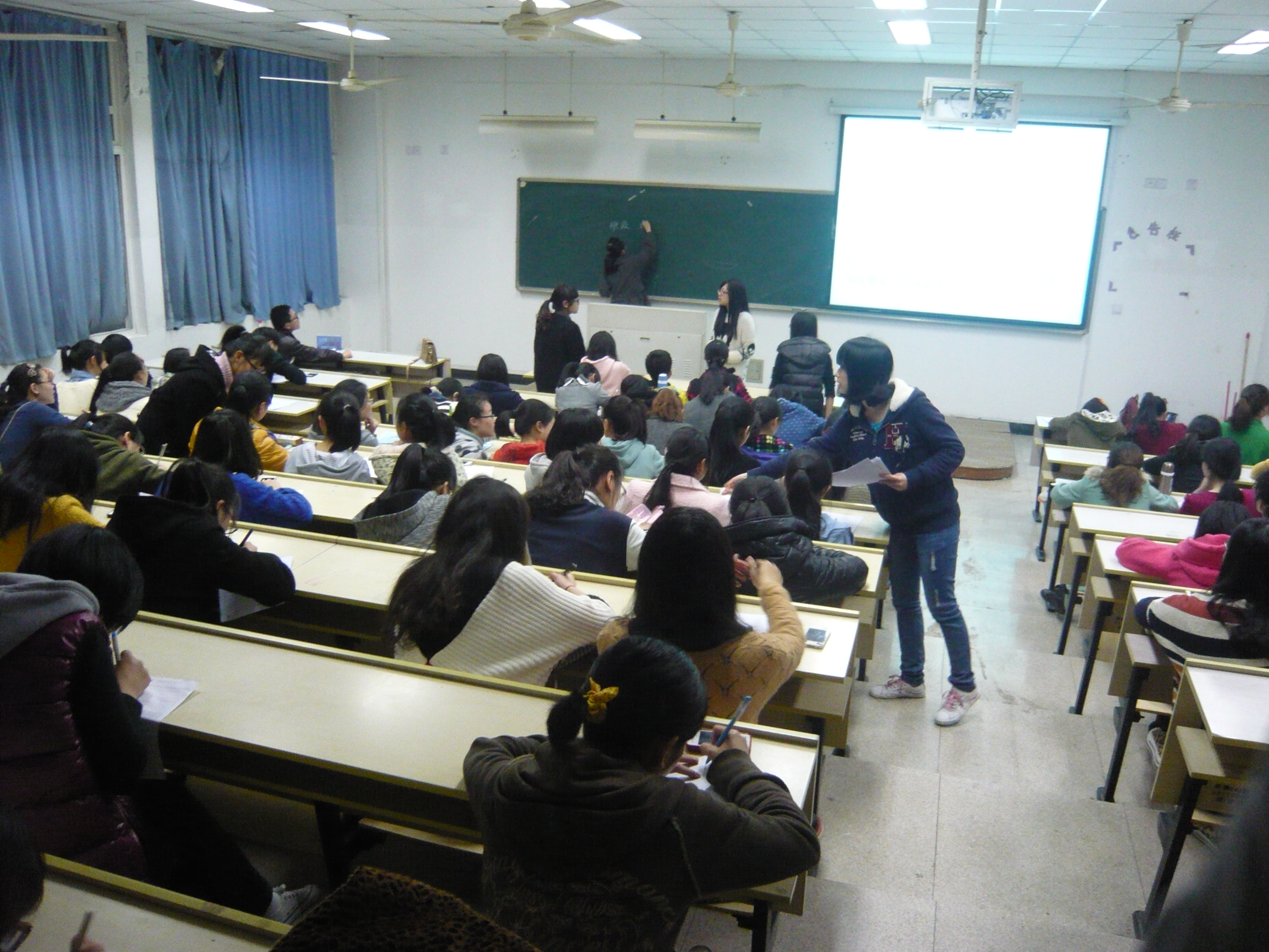 知心姐姐志愿者队伍是我院志愿者工作精品项目,在校内外都享有很高的评价。知心姐姐队伍由留守儿童分队、农民工子弟分队和海岛分队组成。本次招新大会,就是要补充新鲜的血液到各个队伍当中去,使志愿者品牌工作历久弥新。此次招新分为三个环节,首先由各个知心小分队的队长就本队开展服务内容、活动情况做简要的介绍。首先,各个队的队长用精美的ppt向大家展示了一个充满爱和温暖的团队,详细地介绍了每个队的主要工作和活动安排,特别是留守儿童分队,给大家留下了深刻的印象,让前面应征的每一位同学都非常感动。接下来就是第二环节——笔试,要求应征者写一封给小朋友的回信,不限内容,大家拿到纸都开始认真地写了起来。写完的同学则去405和406两个教室进行招新的第三个环节——面试。各个队伍的领队通过提问的方式对每位前来参加面试的同学有了初步的了解,并在最后进行集体交流做出决定。