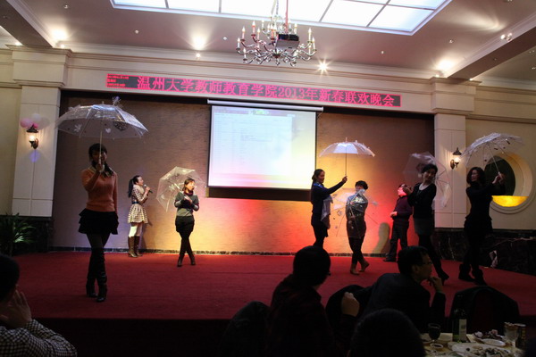 学前系的歌舞《沙家浜的雪人过河》以一如既往的精彩热闹拉开了整场晚会的序幕。教育系的小品《新白雪公主》以雷人的装扮和雷人的台词雷爆全场。教技系的手语歌曲《让爱住我家》充满温馨。小教系的《魔术+独唱》中,周鹤新的魔术难度不小,而谭莉博士更是惊艳登场。行政的《甄嬛传》还是那么搞笑。而心理系的舞蹈《美丽的西班牙女郎》则把晚会推向了高潮。整台晚会充分展现了我院教师的风采,也为大家带来了欢声笑语。今年的联欢会当然也少不了游戏和抽奖环节,只是今年的抽奖跟往年相比做了较大的改动,做到了人人满意、而气氛却更加热烈。