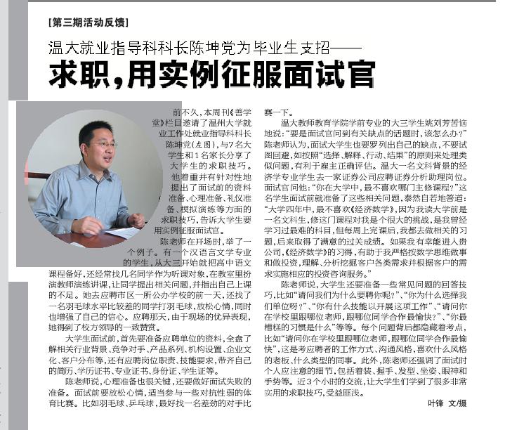 温大就业指导科科长陈坤党为毕业生支招——