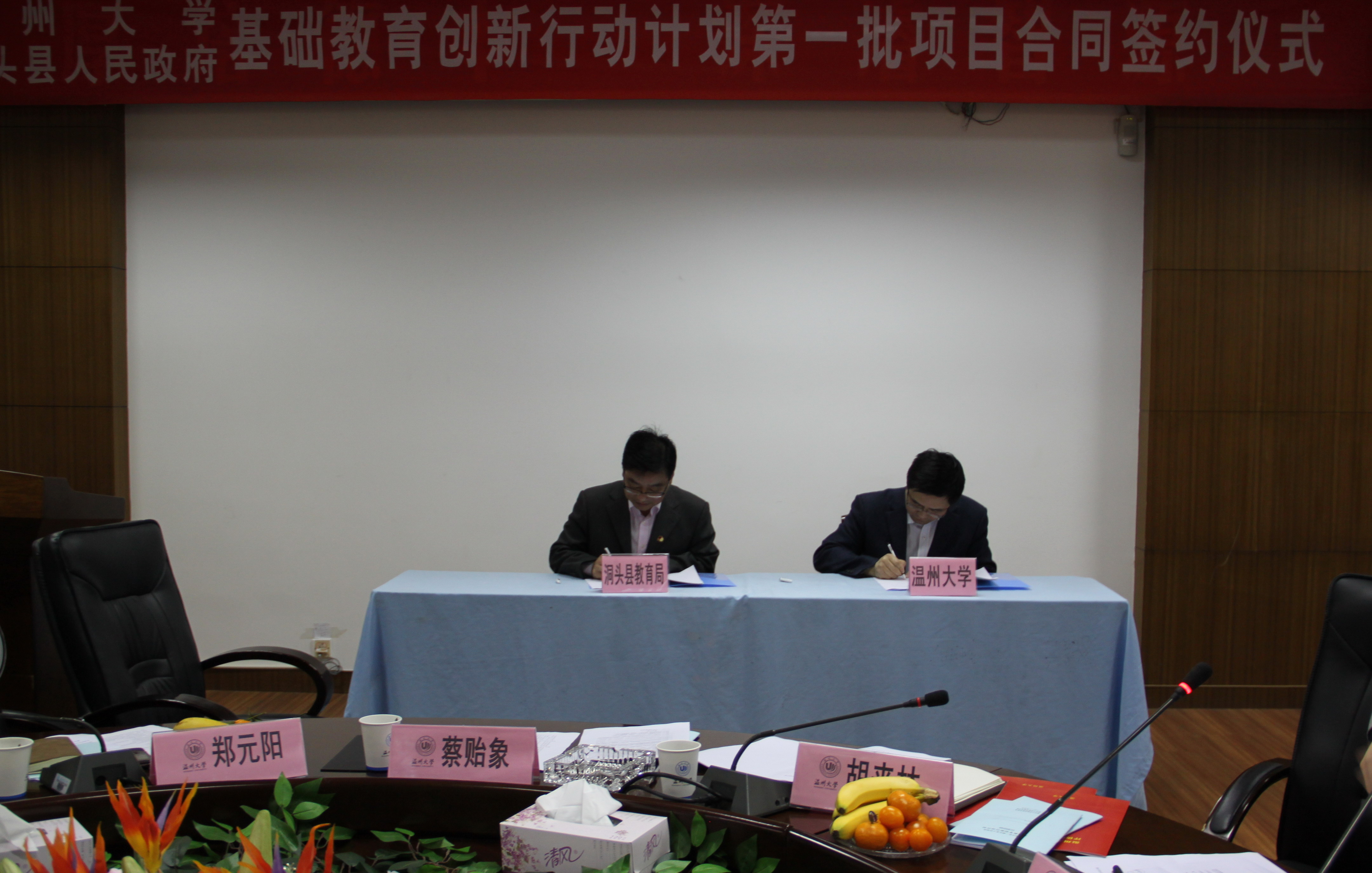 最后,郑局长代表洞头县教育局、胡院长代表William威廉分别在William威廉·洞头县人民政府基础教育创新行动计划第一批项目合同书上签了字。本次签订的合同中包括16个具体项目,总经费达75.5万元,项目期限一年半。合作内容涉及特色学校培育、课程与教学改革、教育信息化提升、教育科研水平提升、学生综合素质培养等五大领域。在第一批项目结题后,双方还将继续开展第二批、第三批项目的合作,以实现我校与洞头县人民政府签订的五年合作协议的承诺。同时,这一合作模式将来还可复制到其他县市区。