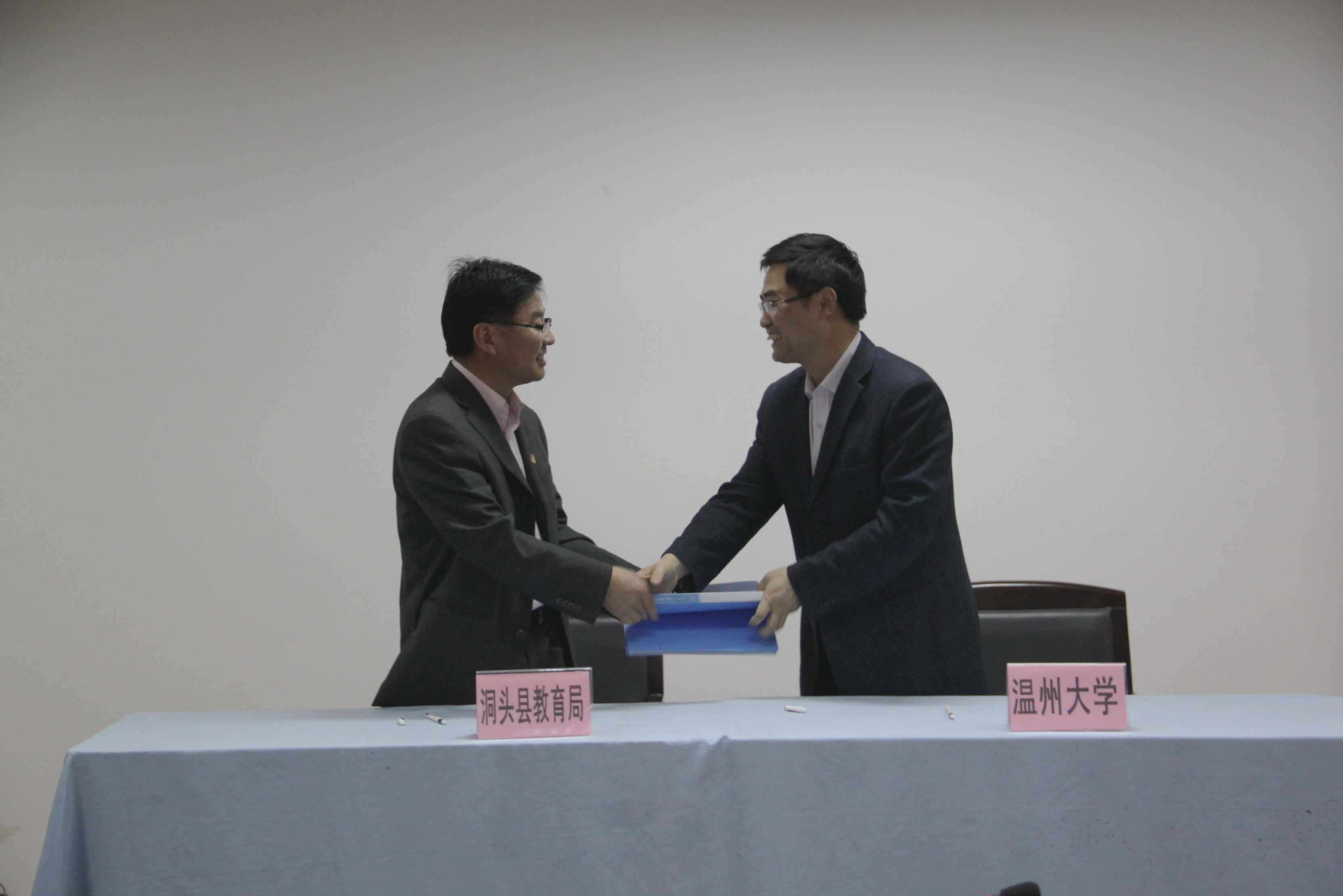 胡来林院长在接下来的讲话中,对这一基础教育创新行动计划从最初策划到现在签约的一年多时间里双方所做出的巨大努力、所经历的各个环节表示感慨万分。他说,像这样由高校与地方政府牵头、由学院与教育局落实、经费全额下拨到项目负责人的的基础教育合作模式,在温大的历史上可能都是首次,显得意义非凡。他说这一合作模式在管理上也实现了很多创新。他还要求各项目负责人一定要认真负责,放远眼光、打开思路;也希望洞头方面提供相应的条件,使双方在合作中真正为洞头县的基础教育做点实事,让洞头老百姓的子女从中有所收获。