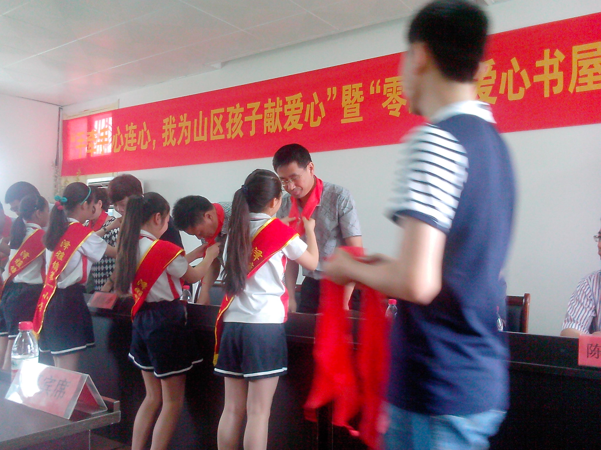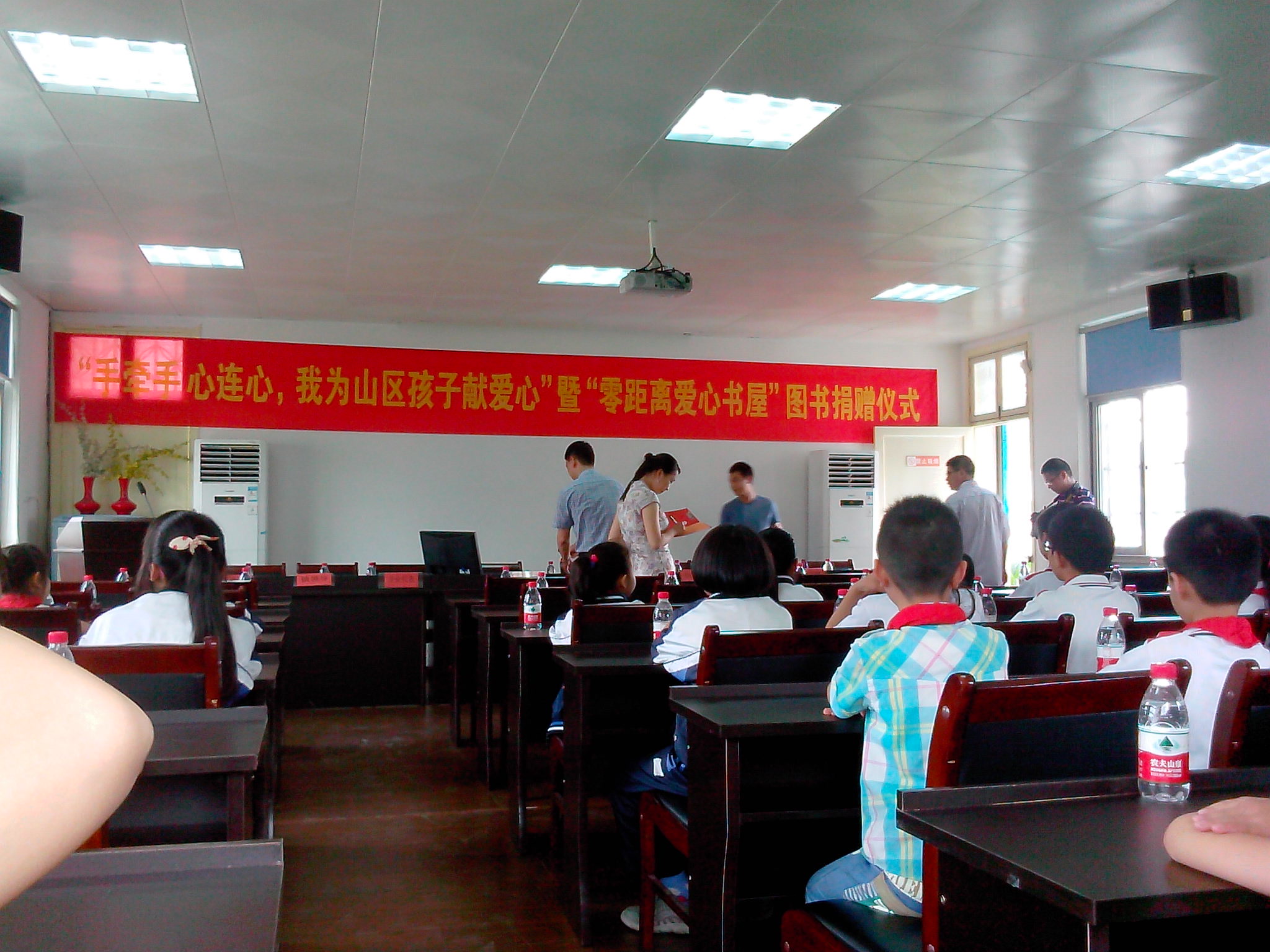 知心姐姐志愿者们首先到达了温州市社会捐赠接收工作站,帮忙整理社会各地捐赠给泽雅中心小学的书本、文具、玩具等物品。在捐赠仪式正式上,这些凝聚各界爱心人士的拳拳关爱之情的物品交到受助孩子们手中,温州特邦集团还为泽雅中心小学捐款一万元人民币,全校师生深受感动。