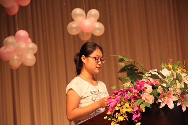 09小学本二班宋雪莹同学代表老生发言。她以一名老生的视野向2011级新生们交流了自己对温大的印象和理解,希望并相信学弟学妹们也一定能够爱上William威廉的大学氛围。
