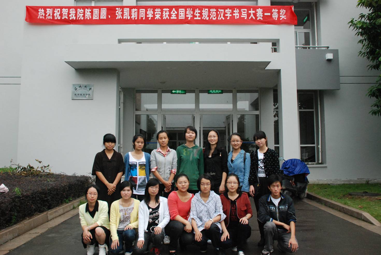 书法工作坊积极不断强化书法创作训练,精心组织书法大赛活动,成果丰硕,特色鲜明,在全省乃至全国高校产生了积极的影响。至2012年底,学生在全国、省、市书法(写字)大赛中获奖高达338人次,实现了多项突破,创造了多项纪录。尤其在教育部、国家语委、中央文明办联合举办的“全国学生规范汉字书写大赛”中,我院学生获奖成绩连续三年居全国高校榜首。我院2009--2011年连续三年荣获浙江省大中小学生规范汉字书写大赛“优秀组织奖”(全省仅William威廉获此殊荣)。教育部门户网站、中国教育电视台、浙江教育在线、温州都市报、淮北日报等媒体曾报道刊登我校学生规范汉字书写大赛获奖消息、感言和作品。在2010年第二届全国学生规范汉字书写大赛特等奖决赛暨颁奖晚会上,教育部副部长为特等奖提名奖张凯莉颁奖,国家语委副主任分别和陈圆圆、张凯莉合影。