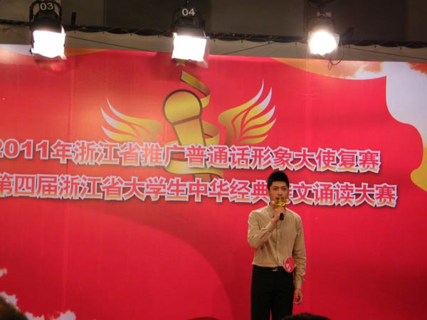由省委宣传部、省语委、省教育厅、省广电集团、浙报集团、团省委等部门举办的“2011年浙江省推广普通话形象大使选拔大赛复赛暨第四届浙江省大学生中华经典诗文诵读大赛”复赛于2011年8月22日在浙江传媒学院如期举行。来自全省高校120名选手经过7月份的网络评比,最终有41名入围现场复赛。