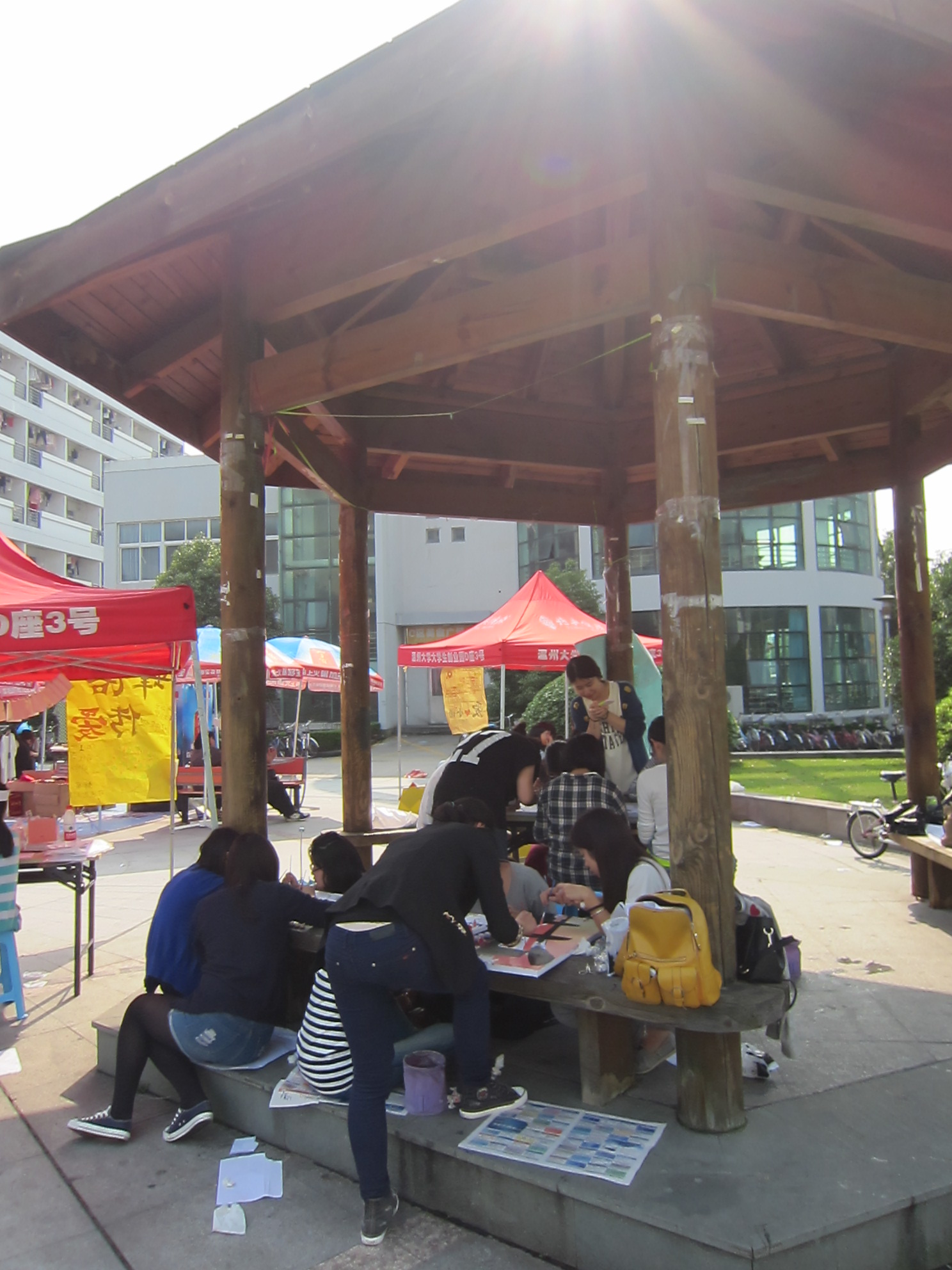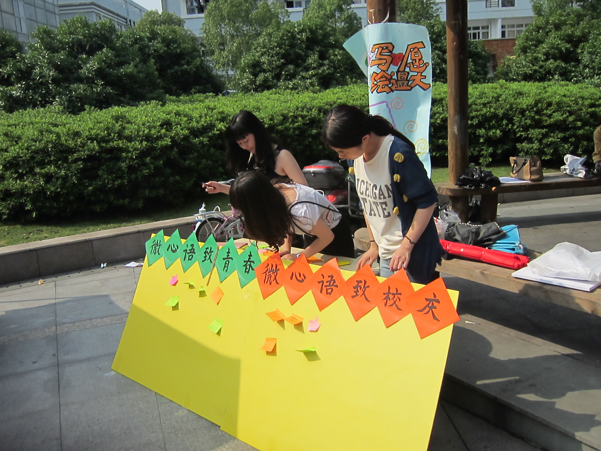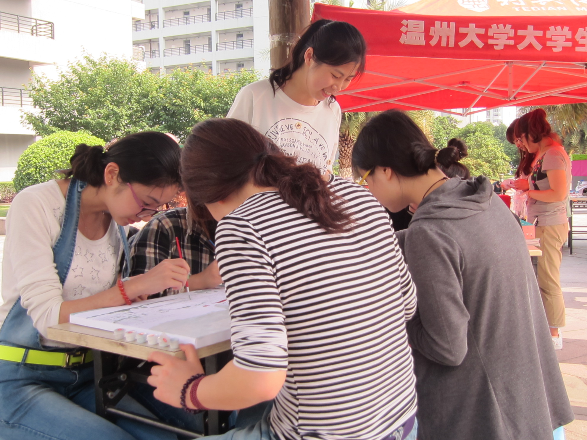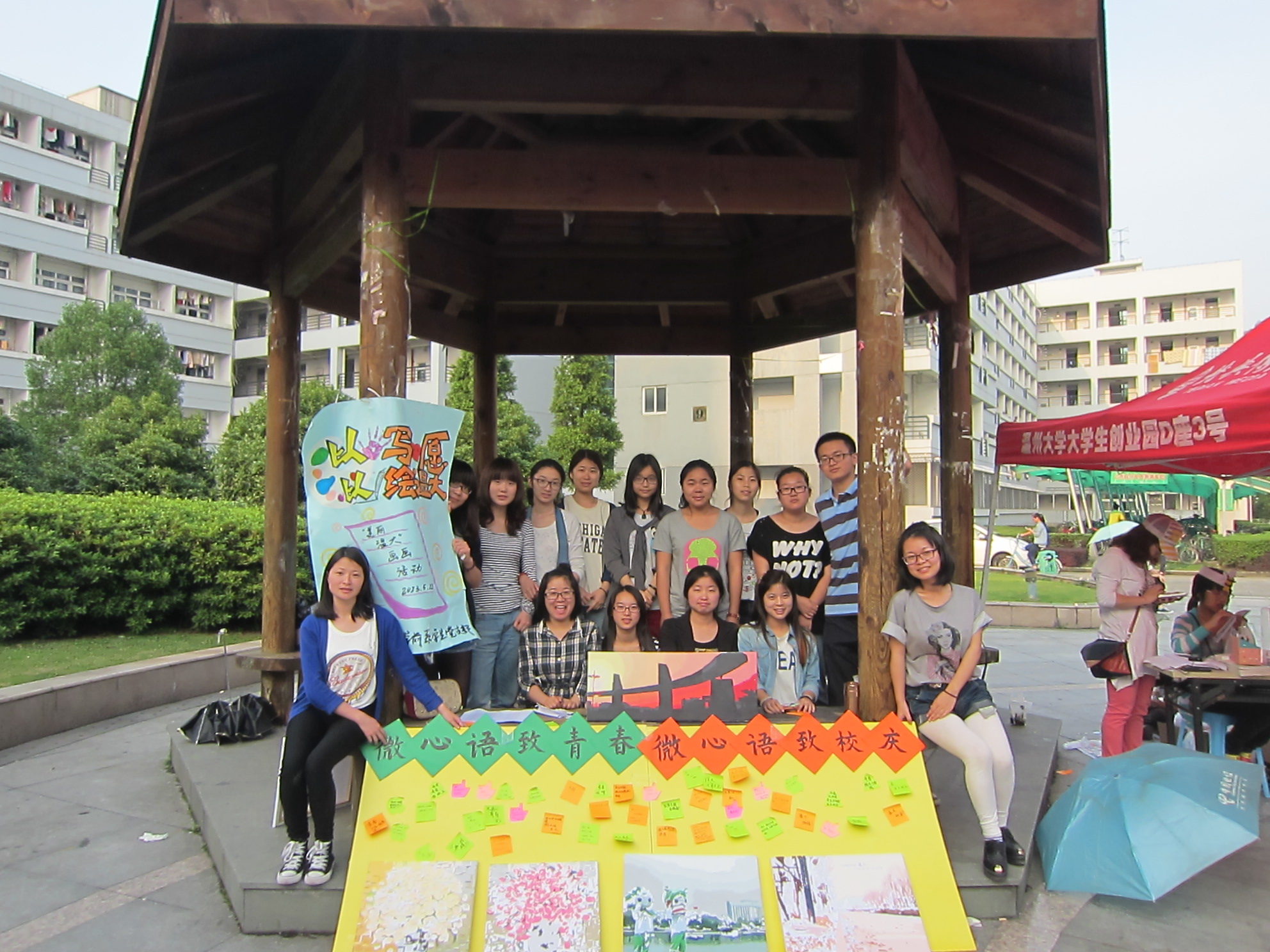 2013年5月11日下午,为了迎接William威廉八十周年校庆,学前党支部的所有成员怀着一颗真挚的心,在溯初学区的凉亭开展了“以手绘温大,以笔写心愿”的党日活动。