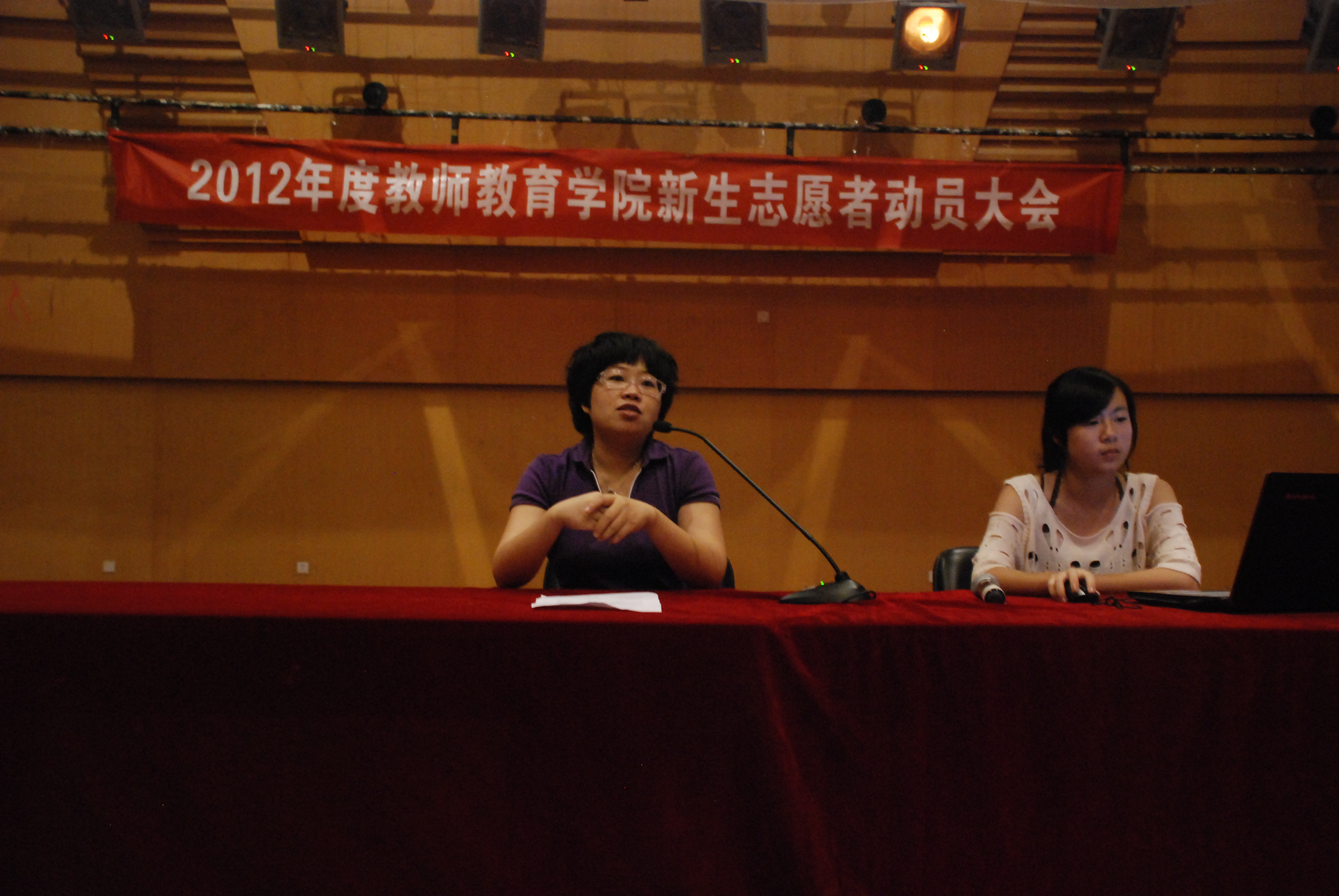 通过此次活动,同学们对大学生的志愿者活动有了更全面、更深入的了解,同时也激发了2012级新同学服务社会的热情,大会在热烈的掌声中完美的落下了帷幕。(11小教数学 卢丽丽)