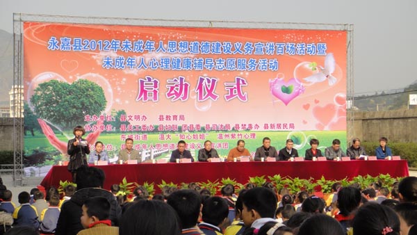 启动仪式上,永嘉县峙口小学、桥下小学、瓯北四中、黄田中学等12所学校被授予“知心姐姐”辅导基地。日后将依托我院“知心姐姐”志愿服务队,综合运用“知心热线”、“知心信箱”、“知心QQ”以及“知心面对面”等形式开展活动。活动内容重点围绕未成年人学习成长过程中存在的突出问题展开,包括中小学生入学适应辅导、良好学习习惯的培养与养成、考试心态的调整,自我意识与人际沟通、挫折教育、良好亲子关系建立等。努力培养人格健全、乐观向上、品德高尚、素质全面的新一代接班人。