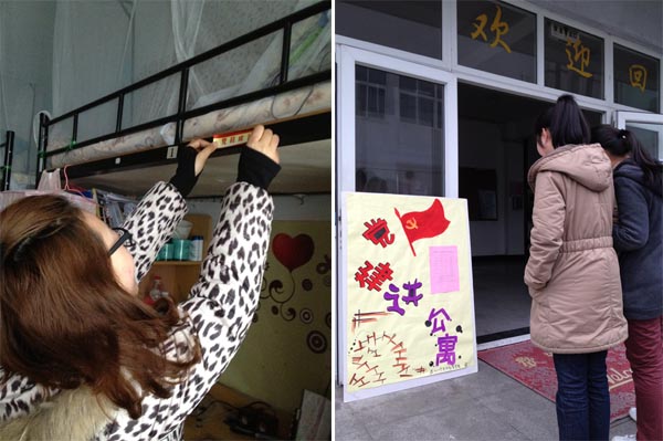 3月7日下午,学院在公寓C区举办学生党员挂牌亮相活动,主要内容主要有:一是“党员床位”挂牌亮相,让每一个党员的床位一目了然,督促党员做好生活文明的先锋表率;二是“党员寝室”挂牌亮相,在学生党员宿舍门上统一挂上“党员寝室”标志,并附有寝室党员个人基本信息,督促整个寝室做好文明、卫生、安全工作;三是申报“党员示范寝室”挂牌亮相,鼓励党员寝室在自愿的前提下主动申报示范寝室,发挥党员寝室的先锋模范作用;四是“党员公寓责任区”挂牌亮相,学院给每个学生支部确立一个“责任区”,主要工作包括不定期检查公寓安全、卫生及晚归、夜不归宿等,发挥学生主体的自我管理与自我教育作用。