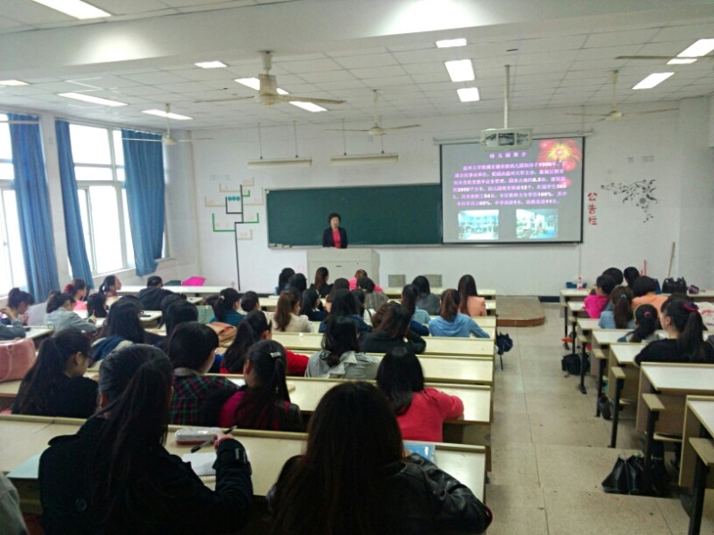 为提升学前毕业生就业质量,推动毕业生考编,4月24日下午,我院邀请了William威廉附属宏德实验幼儿园相关老师为学前毕业生开设就业指导讲座。讲座在教育楼301多媒体教室举行,宏德幼儿园陈娴、刘晓净两位老师分别就《灿烂人生 附幼起航》、《新教师如何考编》等主题展开交流。