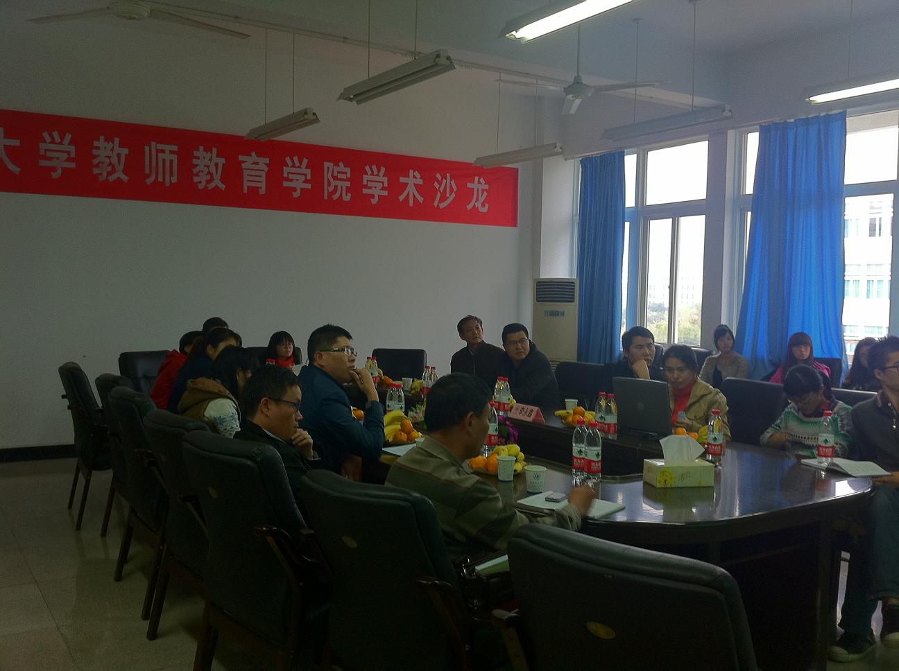 在主题报告之前,心理与行为研究所副所长胡瑜博士对研究所的成立背景、成立之后所取得的成绩等方面做了介绍;首先,我院卢佳老师就其博士论文的最新进展进行报告,卢佳博士关于数学障碍儿童的数字加工效应的研究,是对学习障碍的一次新的深入探索,激发了大家对学习障碍的极大兴趣,大家纷纷发言并与卢佳老师进行交流。其次,李永鑫教授就当前社会比较关注的职业健康心理学及其相关进展和大家进行分享。李教授算得上是国内职业倦怠研究的第一人,由他修订的工作倦怠量表及其相关研究经常被引用,2010年高居心理学科引用率第2位。李教授从最初研究的职业倦怠谈起,引伸出职业健康心理学的一系列问题,李永鑫教授以丰富的研究经验和幽默风趣的语言激起了同学们极大的热情,大家就此进行了热烈的讨论。