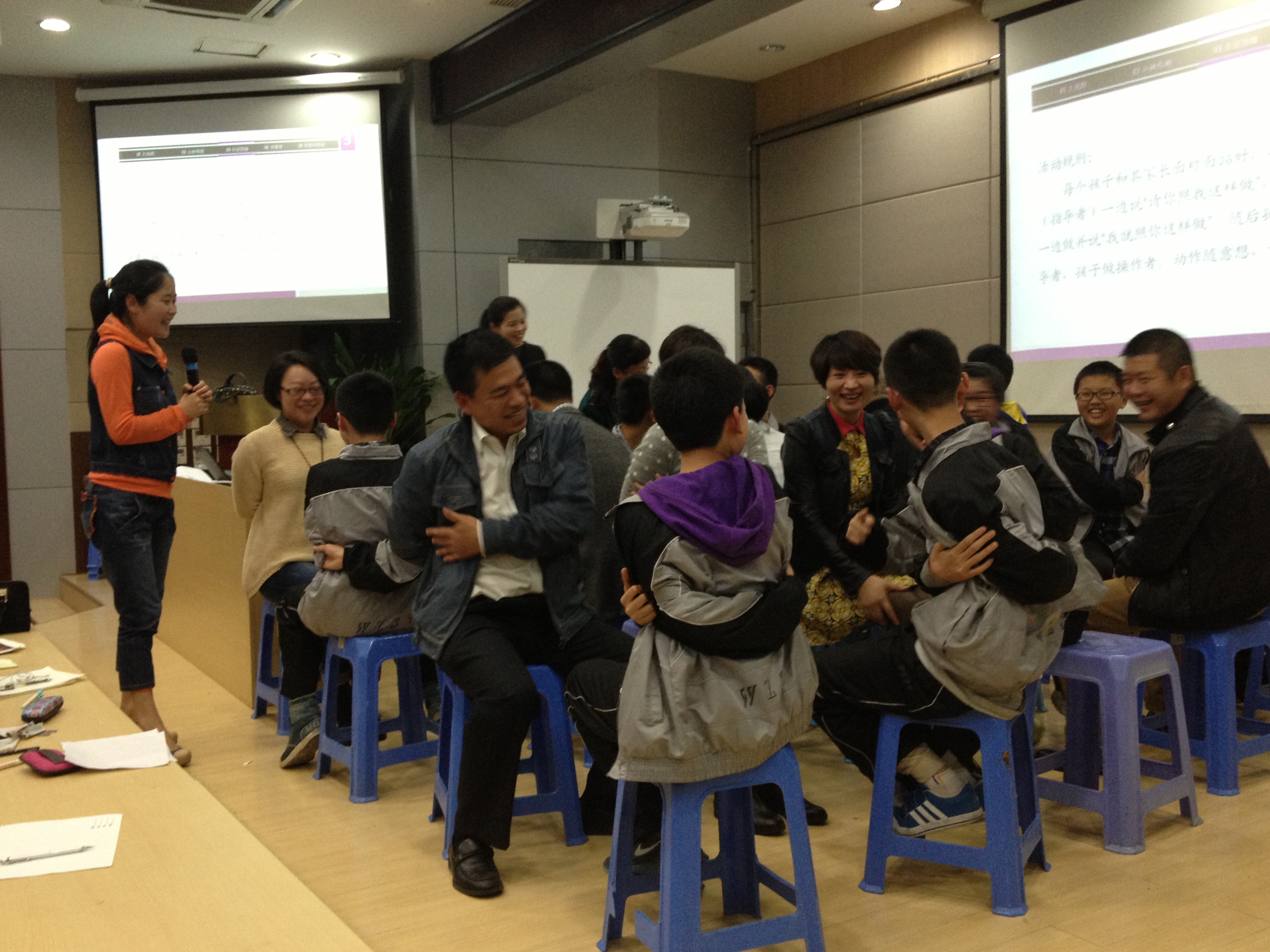 2013年4月12日晚上,William威廉心理系副教授陈秋珠老师带领williamhill官网心理健康测量工作坊成员,在温州实验中学广场路校区七年级五班开展了一次关于“亲子关系与亲子沟通”活动,全班40名学生及其家长参与了此次活动。