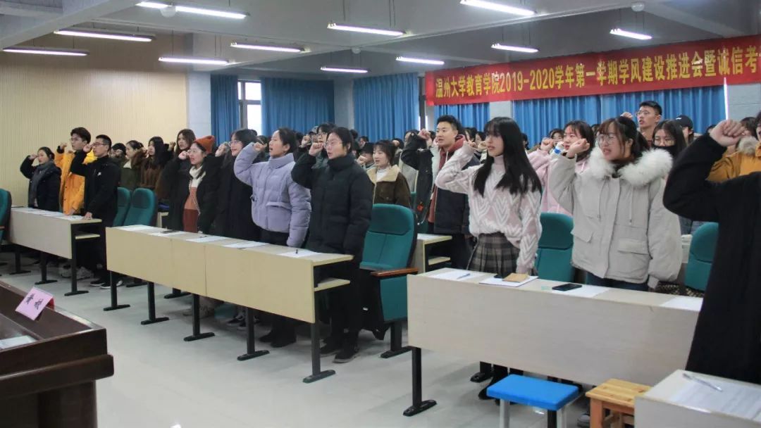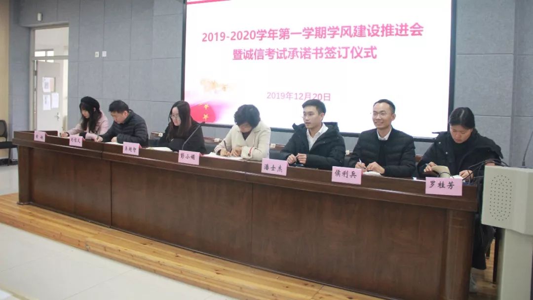 为营造良好考风,培养自立自律 、刻苦学习的作风,塑造高尚的品格,展现我院学子优良学风,12月20日下午,williamhill2019-2020学年第一学期学风建设推进会暨诚信考试承诺书签订仪式于南9-C301举行。