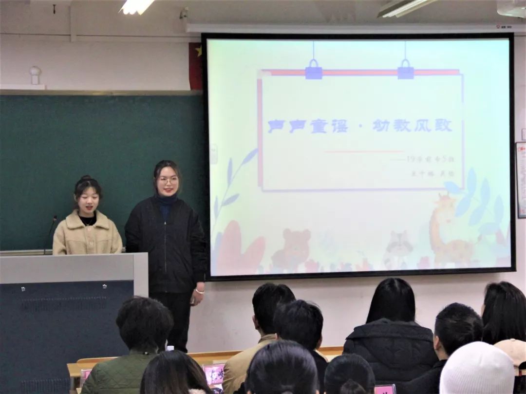 19学前专3班将全班同学分为七组,依次上台模拟教学过程、开展幼儿教育,在不断新颖丰富课堂内容的同时增强班集体的团结协作能力和凝聚力。
