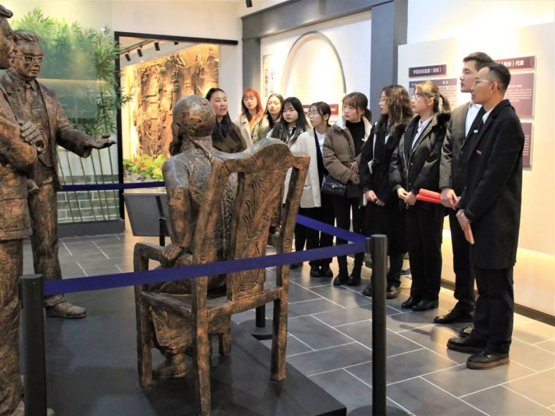 7日上午,我院师生一行前往杭师大参观校史馆。跟随着讲解员的脚步,一行人仿佛走过杭师大110年的校史。从浙江官立两级师范学堂到杭州师范学院,再到杭州师范大学,参观史馆的教院学子们无不频频驻足。最后,一行人在校史馆合影留念。