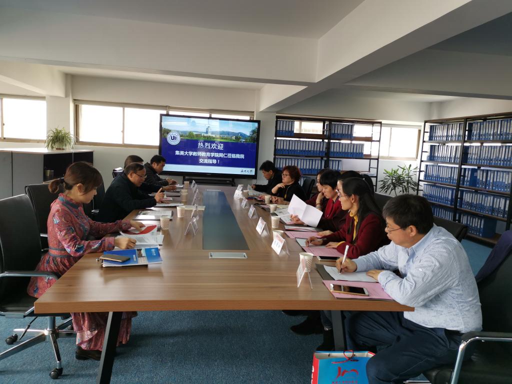 开学初,湖南第一师范学院、集美大学williamhill官网、浙江外国语学院williamhill以及湖州师范学院williamhill官网等多所兄弟院校陆续来访我院。学院领导、部分教师以及相关科室(中心)的同志热情接待来宾,双方就二级学院党建、师范专业认证、教师教育实验中心建设以及学生思政工作开展了热烈的交流。