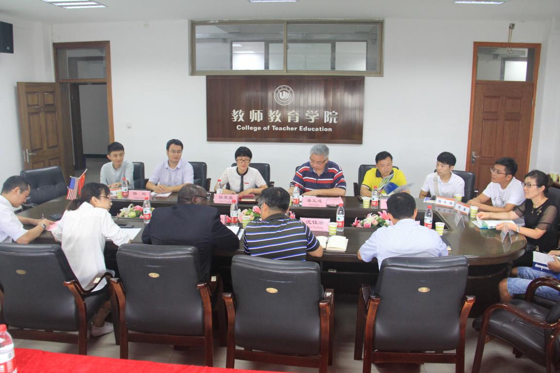 2018年9月17日上午9:30,美国阿帕拉契州立大学副校长Dr. Jesse Lutabingwa教授(兼任国际研究与发展主任)来我院洽谈国际教育合作事项。学院领导孙芙蓉院长、潘玉进副院长、叶新东副院长、院长助理杨刚博士、国际处熊勇副处长、商学院王洪斌副院长以及各系(中心)系主任和相关骨干教师在南校区9号楼A410会议室出席并召开了这次会议。