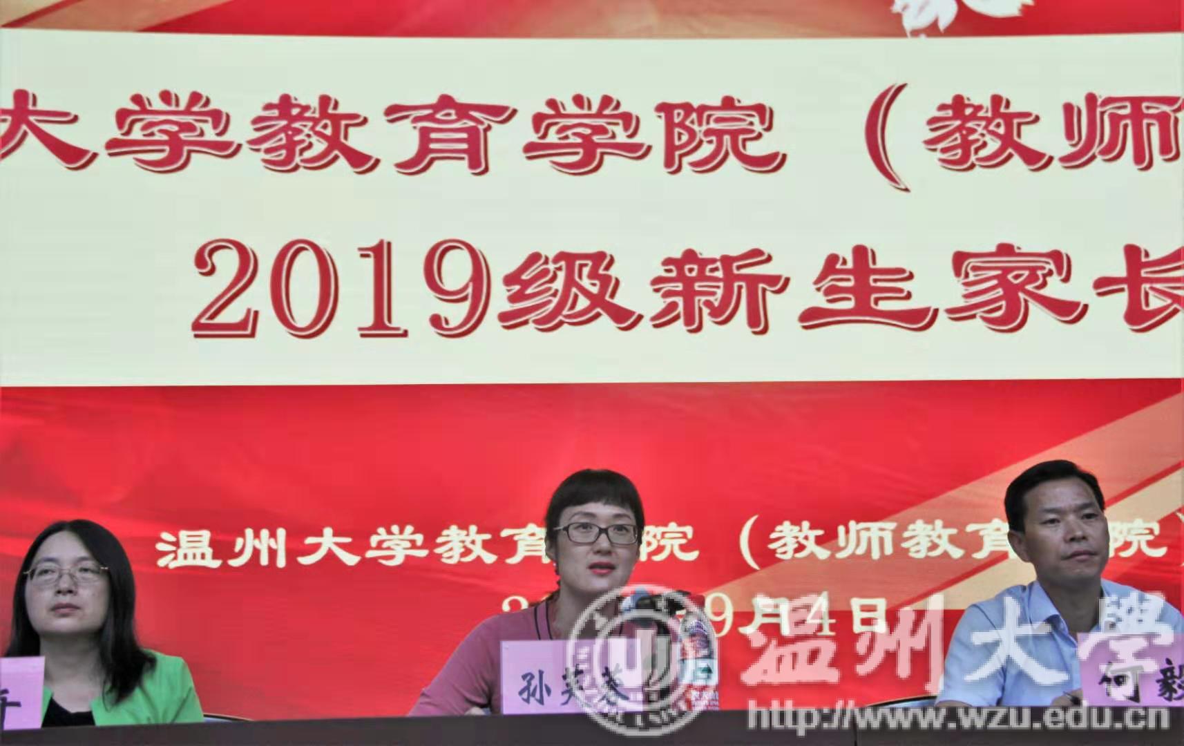 会议伊始,孙芙蓉院长以“第二家长”的身份,用“久”、“大”、“全”、“强、”“特”、“优”六个字向新生家长们介绍教院的六大特点。“久”即为学院历史悠久,教师教育底蕴深厚、源远流长。“大”不仅仅意为着学院之大,更是格局大、平台大,学院凭借雄厚的师资力量、丰富的教学资源给学生们提供了广阔的发展平台。“全”是指williamhill为William威廉最大的全师范类专业人才培养学院。“强”即为办学实力强,为浙江省重点建设教师培养基地。同时,教院办学特色鲜明,致力于培养具有“博爱雅艺”的师范气质、突出的教育教学技能和教育创新能力、多能全域的未来卓越教育色人才。“优”是指学生入口优秀、学院培养过程优秀、毕业生出口优秀。面对刚刚经历角色转变的新生家长们,孙芙蓉院长强调,要让学院的发展惠及所有的学生,通过搭建家校沟通的桥梁,关注每个学生的发展,让学院因学生的优秀而辉煌。
