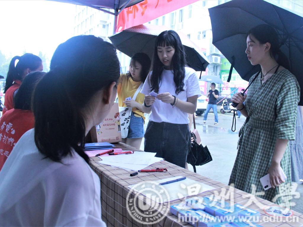 为了做好学院迎新工作,志愿者们分批次轮流接待新生。他们各司其职,有的坐在帐篷内为新生办理报到手续以及分发新生大礼包,有的冒着小雨帮忙新生照看、搬运沉重的行李,有的引导新生到宿舍入住。在工作的同时,他们还热心地为学生和家长解答疑惑,介绍学习生活经验。新同学们拿着教院提供的明信片,写下想对未来的自己说的话,投进红色的邮筒中,毕业时明信片会如期而至。报到完毕的新同学们纷纷举起教院学生会为他们精心准备的迎新小标牌,一旁的志愿者用相机为新生和家长记录下这宝贵的一刻。志愿者热情周道的服务、温馨甜蜜的笑容使新同学们感受到了来自教院师生的亲切关怀。