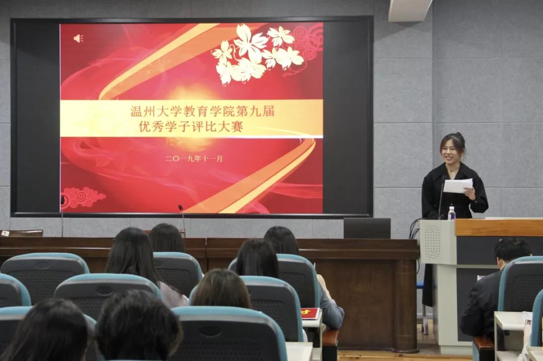 随后,主持人简短地向在场观众们介绍了赛制规则,优秀学子评比正式开始。二十位选手依次登台,通过演讲与PPT相结合的方式,声情并茂地向在场观众讲述了自己在温大williamhill这几年里学习、工作以及生活的故事。她们展现了如何更高效地学习,和利用课余时间参与的一系列志愿服务与社会实践以及在教院生活的点滴感悟和成长历程。
