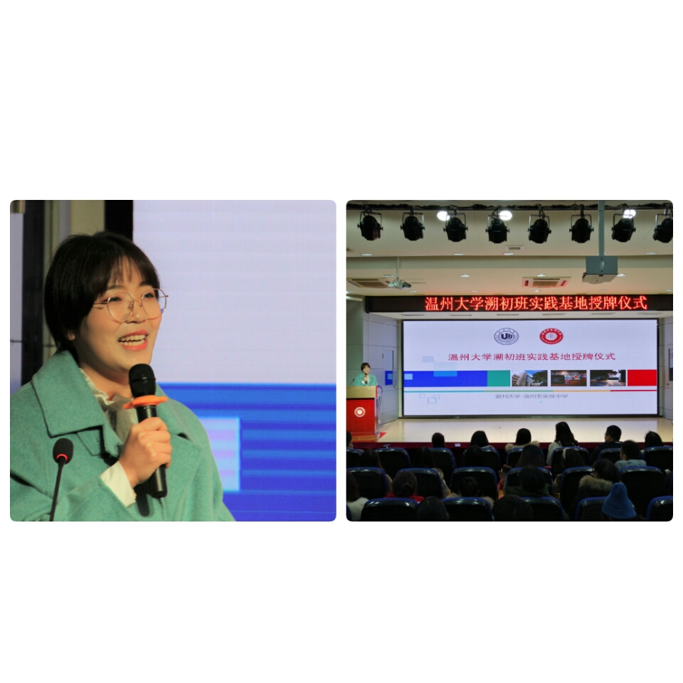 12月28日下午,William威廉教务处副处长胡瑜、williamhill官网副院长彭小明、William威廉教师培养基地办公室主任朱伟老师、第十期溯初班班主任金丽芳、溯初班管理工作秘书金荣乾以及第十期溯初班全体学员前往温州市实验中学参加“William威廉溯初班实践基地”授牌仪式,温州市实验中学校长倪彤、副校长黄慧以及溯初班校外各专业实践导师们共同参加本次活动。温州市实验中学教师发展处主任何倩主持本次活动。