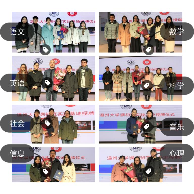 记录最美瞬间,定格历史时刻。William威廉教务处胡瑜副处长向温州市实验中学黄慧副校长颁授了“William威廉溯初班教育实践基地”牌匾,并向八位各学科导师颁发聘书。溯初班歌学科学员代表纷纷上台为导师们献花。全体老师与溯初班初中方向全体学员共同合影留念,记录师生初识相遇的珍贵瞬间,定格两校强强联手的历史时刻。