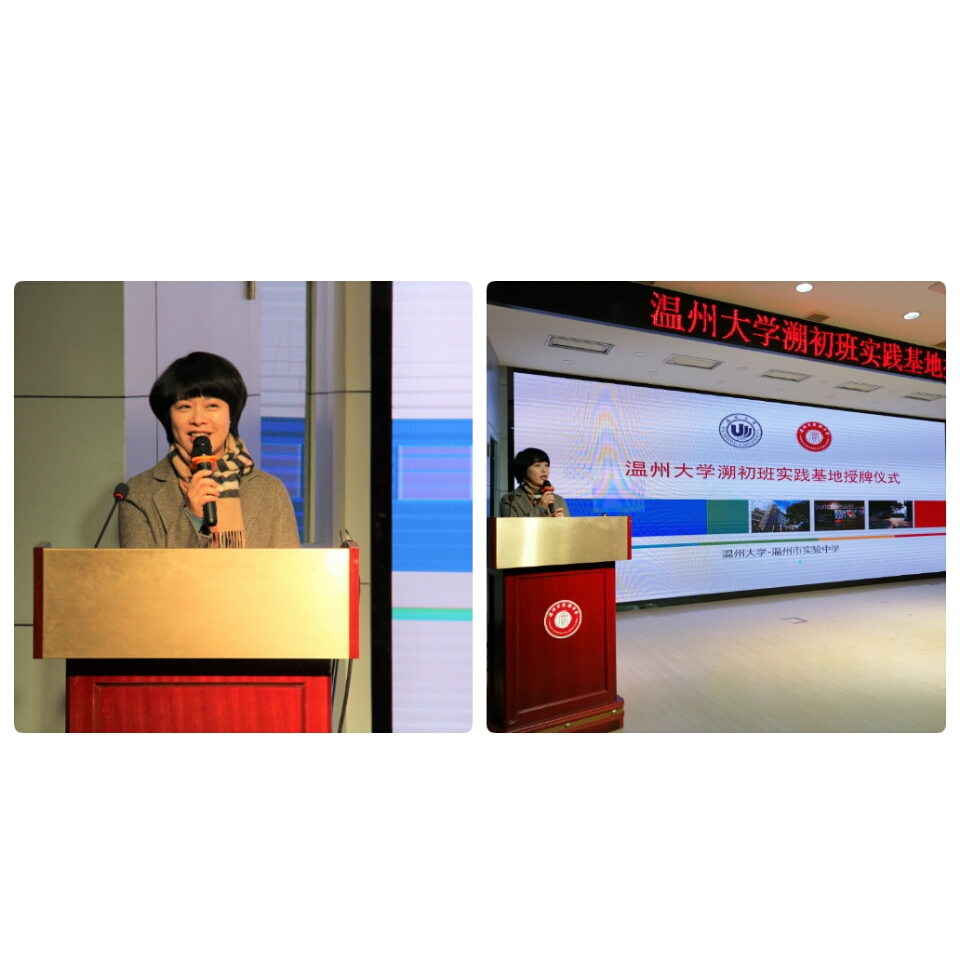携手并进育人路,共促教育新发展。紧接着彭小明副院长以William威廉的发展现状作为切入点,进一步对溯初班的发展历史、荣誉奖项作简短的介绍。温州市实验中学作为温州名校,溯初班是作为温大师范精英班,此次实践基地的建立是试图浙南地区教育界的“黄埔军校”首次摸索与尝试。彭院长更是叮嘱溯初班学员在导师的辛勤指导下,虚心好学,学会教书育人并心怀感恩,学会自我发展并砥砺前行,不辜负爱,更不辜负期待。