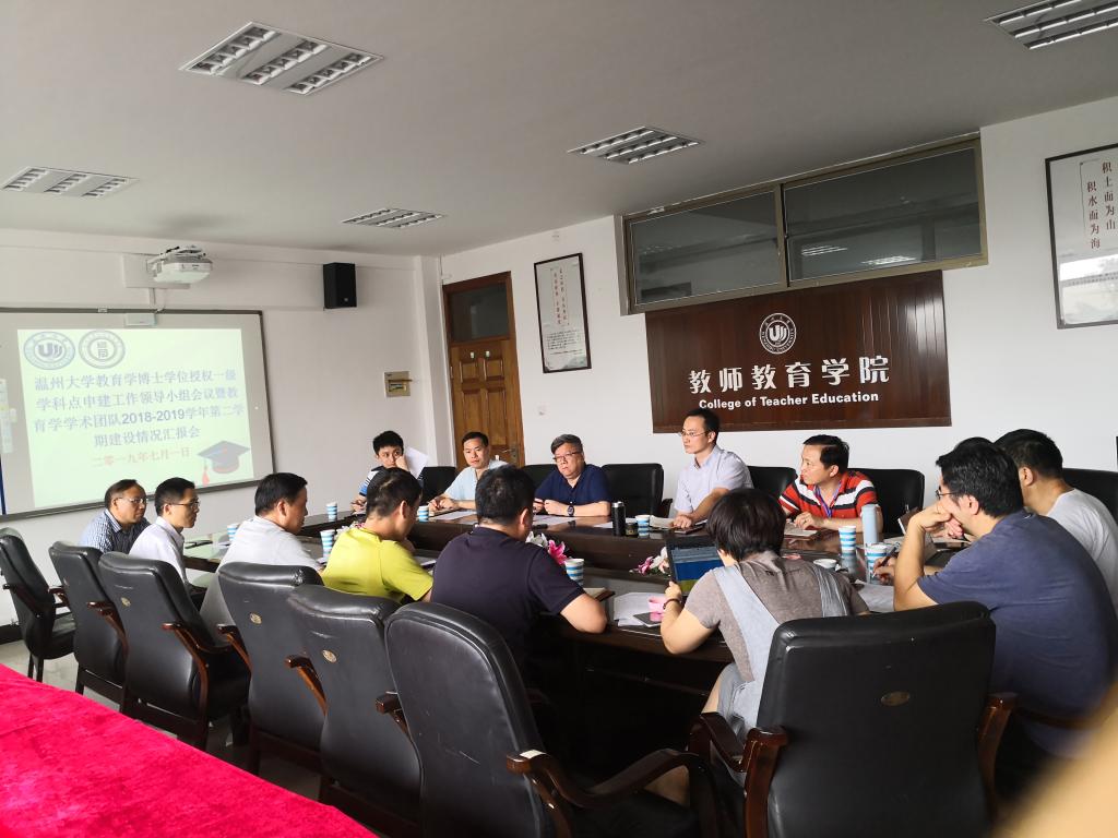 首先,叶新东副院长向与会人员汇报了我院在申报教育学博士学位授权一级学科点方面近两年来开展的工作、取得的成绩和面临的问题,分析了已有的优势和存在的不足。随后各学术团队负责人汇报了2018-2019学年第二学期团队建设的情况和面临的挑战。各团队在学术交流、人才引进、成果培育和学科方向凝炼方面都取得了一定进展,并表示在未来的团队建设中继续发挥优势、补足短板、整合资源、寻求突破。