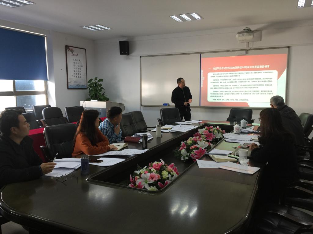 会上,学院领导班子结合学习体会先后发言,分别结合改革开放40周年以来的家、院、校、国家的发展谈了自身的感触。孙芙蓉院长指出,每一次学习习近平总书记重要讲话精神都有非常深刻的体会,结合学院工作,我们首先要有宏心壮志,有信仰、信念、信心,一代代发展和建设学院,其次要抓住机遇、顺势而为,用科学方法加强顶层设计,奋斗不已,始终坚持以人为中心,时刻关心每一位老师的发展,激发每位老师的创造力,创造更多学院的奇迹。杨立淮书记做总结讲话,他指出,国家、学校、学院的发展得益于一代又一代人的努力和奋斗,学院目前属于爬坡建设期,我们要坚持问题导向,抓住机遇,严抓党风廉政建设,科学决策,促进学院更好的发展。