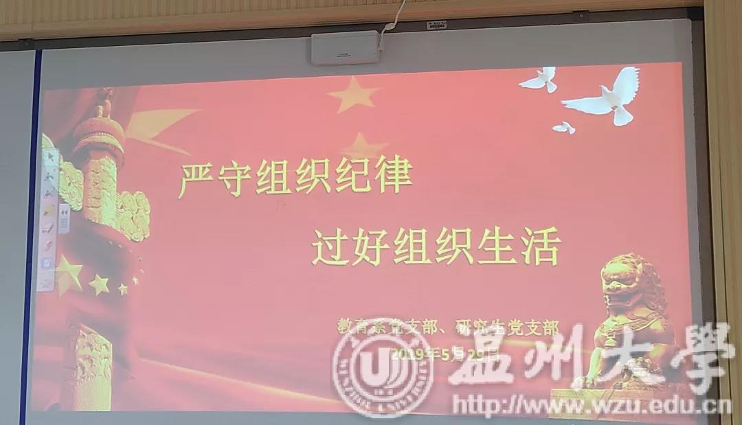 5月29日下午3:30,williamhill官网教育系党支部和研究生党支部在南校区9C401开展以“严守组织纪律,过好组织生活”为主题的警示教育活动。参会人员有williamhill官网教育系支部的全体教师党员和研究生党支部的学生党员。本次活动由教育系支部书记周奇老师主持。
