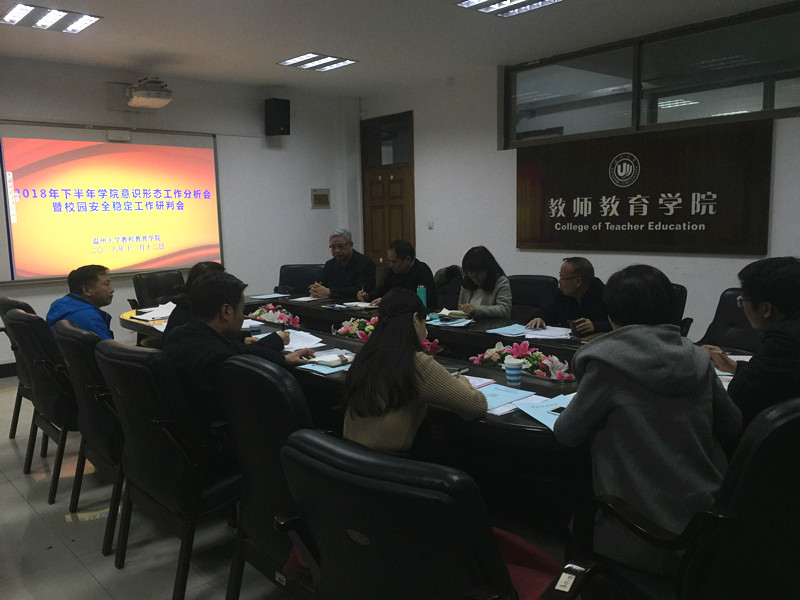 为深入贯彻中央、省委及学校部署要求,我院于12月12日下午在9A410召开2018年下半年高校安全稳定隐患排查化解和校园意识形态领域分析研判工作会议,学院党政班子成员、跟岗院长、各科室负责人参加会议,杨立淮书记主持会议。