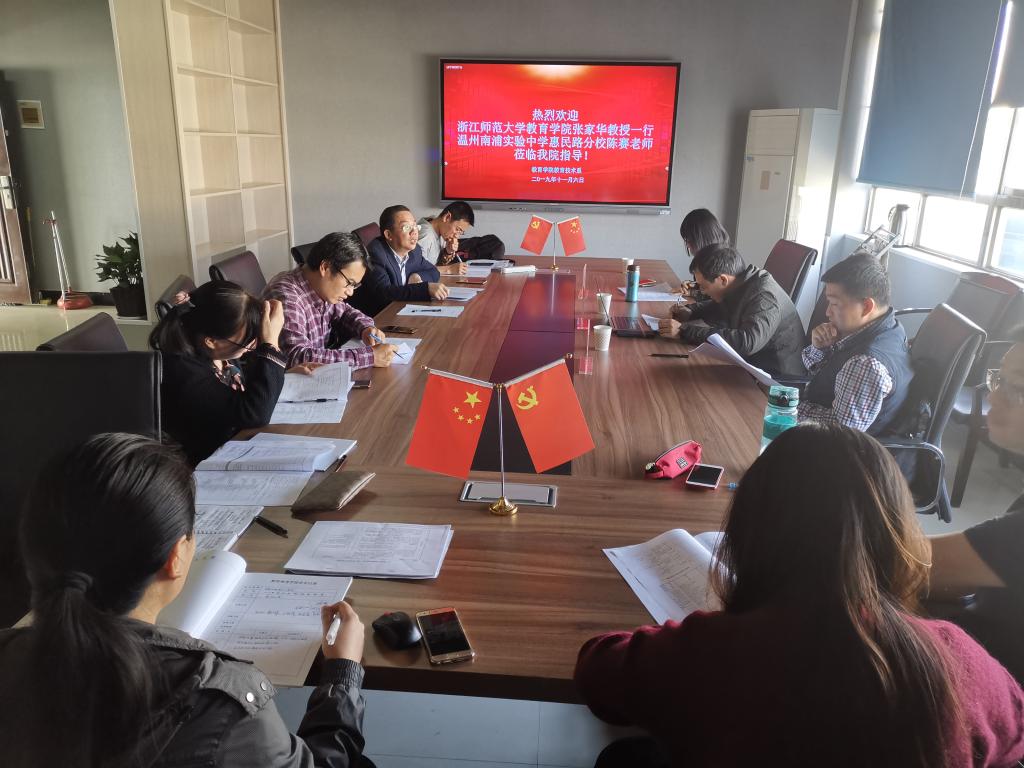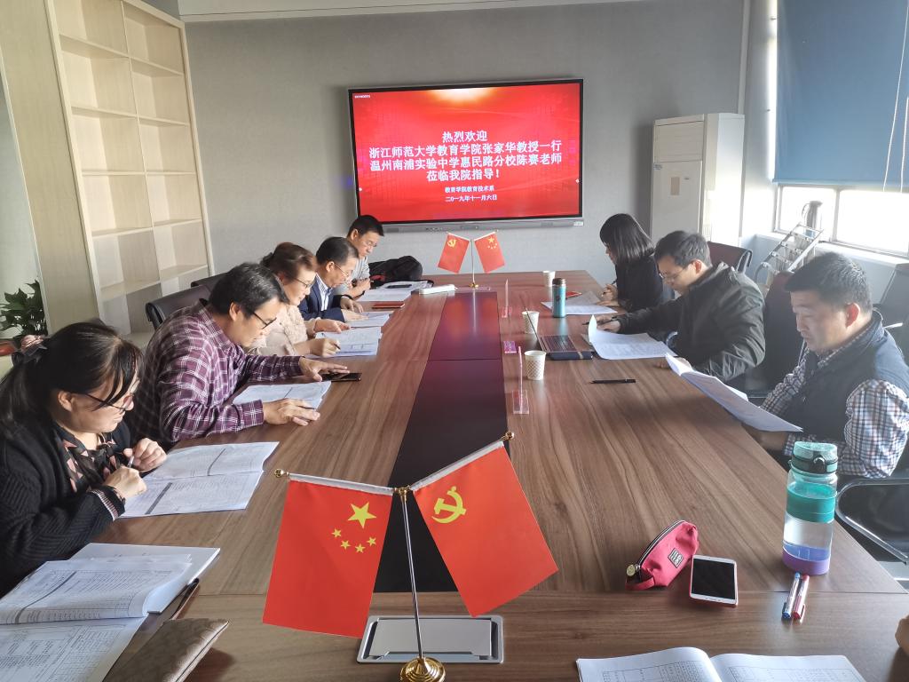 2019年11月6日上午,我院教育技术学专业召开新一轮专业人才培养方案论证会。本次专业人才培养方案论证会很荣幸地邀请到浙江师范大学教育技术学系主任张家华教授、王小明教授和南浦实验中学教育集团温州市信息技术骨干教师陈赛老师莅临我院指导。我校的教师教学发展中心主任王佑镁教授、我院叶新东副院长及教育技术学系的全体教师参加了本次专业人才培养方案论证会。
