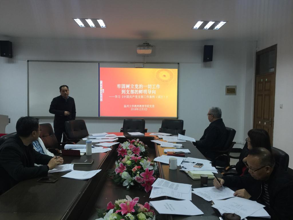 学院领导班子分别就《中国共产党支部工作条例(试行)》分享了自己的学习体会。会上,学习传达了上级党组织关于做好学习贯彻《中国共产党支部工作条例(试行)》的文件精神,并就在全院党组织和党员中开展学习贯彻《中国共产党支部工作条例(试行)》工作进行了部署。