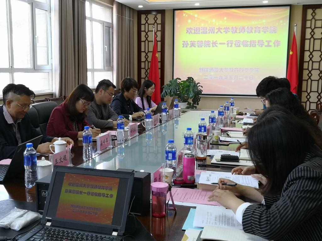 2019年5月20日,williamhill官网孙芙蓉院长一行在新疆师范大学进行了为期一天的调研,新疆师范大学教育科学学院赵建梅院长率队参与了座谈。此次调研主题有两个,一是借鉴新疆师范大学教育科学学院教育学升博点建设的经验;二是推广和介绍我院的在线精品课程建设。