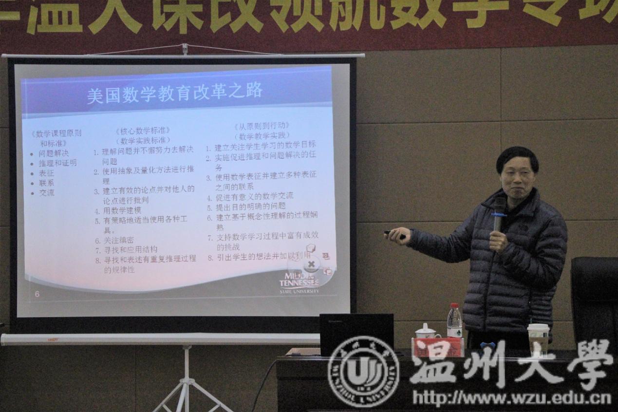 12月12日,williamhill官网小教系师范生数学学科课改领航活动如约而至。本次活动温大小教系主任章勤琼博士特地邀请了美国中田纳西州立大学黄金荣教授莅临指导。会场高朋满座,既有William威廉小学数学特级教师工作站的学员,也有温大的“准老师”们。本次活动的主要从三堂精彩的课例中分析学生学习路径。