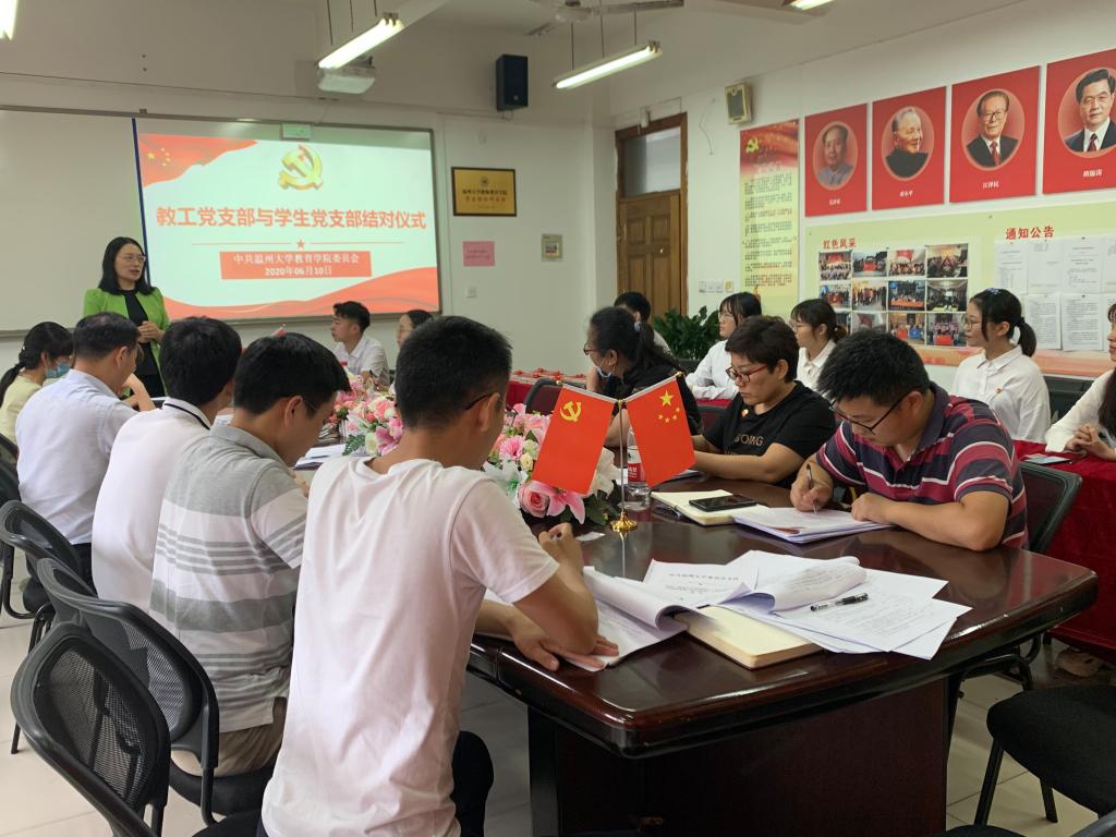 党委副书记彭小媚讲到,希望以教工支部和学生支部结对共建的形式,让我们的学生党员能更多地在交流过程中感受到老师丰厚的知识底蕴,也能感受到老师坚定的理想信念,进一步感染到每一位同学,同时她也希望学生党员能够在与老师接触中,让老师也能感受到新一代大学生的朝气蓬勃,共同促进,让双方优势得到进一步发挥。
