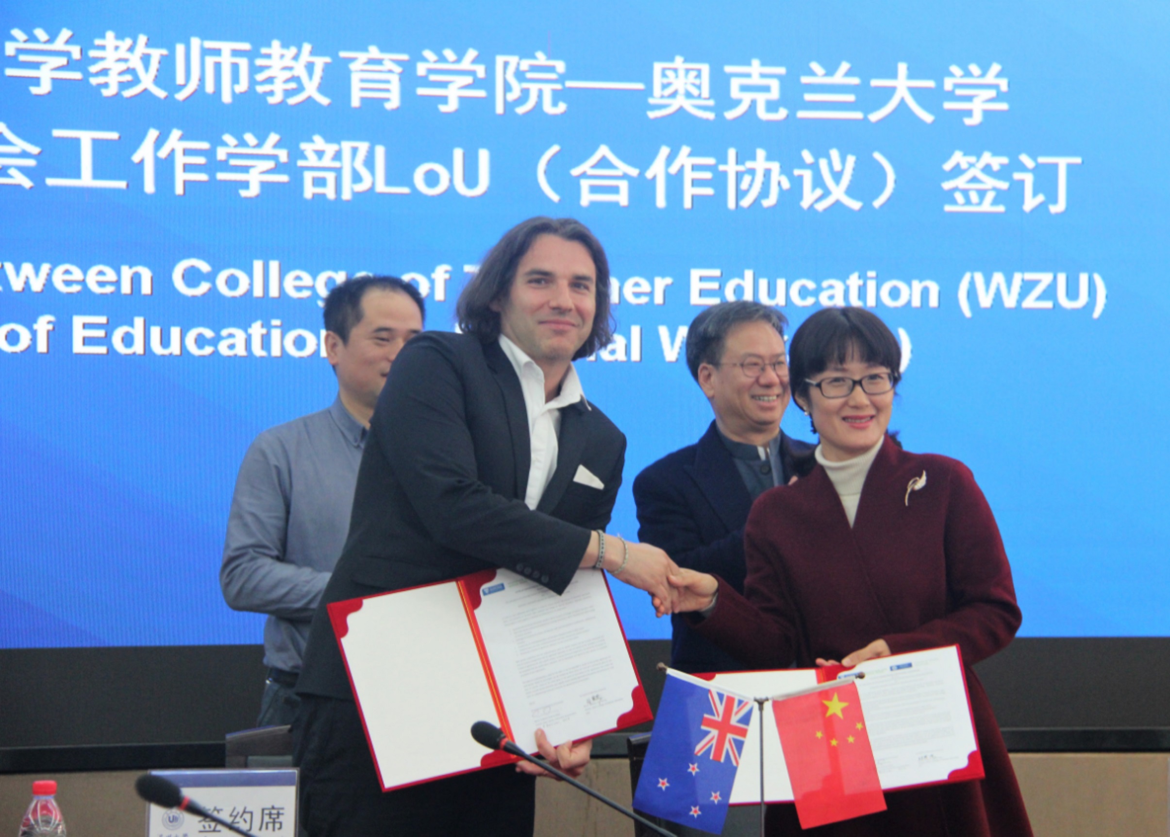 会上,williamhill官网与奥克兰大学教育与社会工作学部签订了合作协议,敦聘新西兰奥克兰大学Dr.MarekTesar为客座教授,并由孙院长向Dr.MarekTesar颁发聘书。