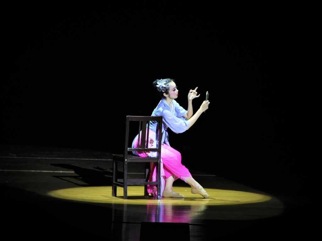 首先进行的是独舞专场。17学前专1班带来的独舞《点绛唇》讲述了一名女子急切盼夫归,却怕等夫归来时自己已没有美丽的容颜,便一次次对镜点红唇,一次次推门望夫的凄美故事,令人为之动容。17学前专4班带来了独舞《藤枝叶》,在优美的傣族乐旋律中,同学们用优美的舞姿展现了藤蔓在地面上缓慢伸展,渴望破土而出,枝叶与藤蔓相附着,一同而上,最终紧紧地牵扯在一起的情景。17学前专10班带来了独舞《且看行云》,舞者扮演的伊人独自在云中,散发出孤芳自赏的气质,却也掩盖不了内心澎湃的激情。