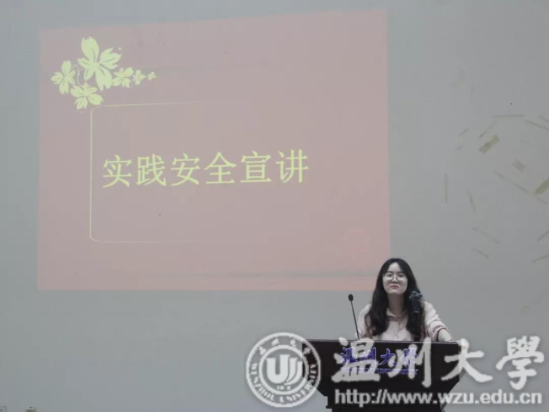 在社会实践中,自身安全也十分重要。学生科辅导员吴超智也在大会中做了实践安全宣讲,她说道,同学们要以预防为主,安全第一。在实践过程中必须要注意出行安全、财物安全及人身安全,给自己留下满满的收获、成长和回忆。接着,携手童真实践队队长林瑞带领大家进行宣誓,教院学子满怀激情,流露出对暑期实践的无限期待。