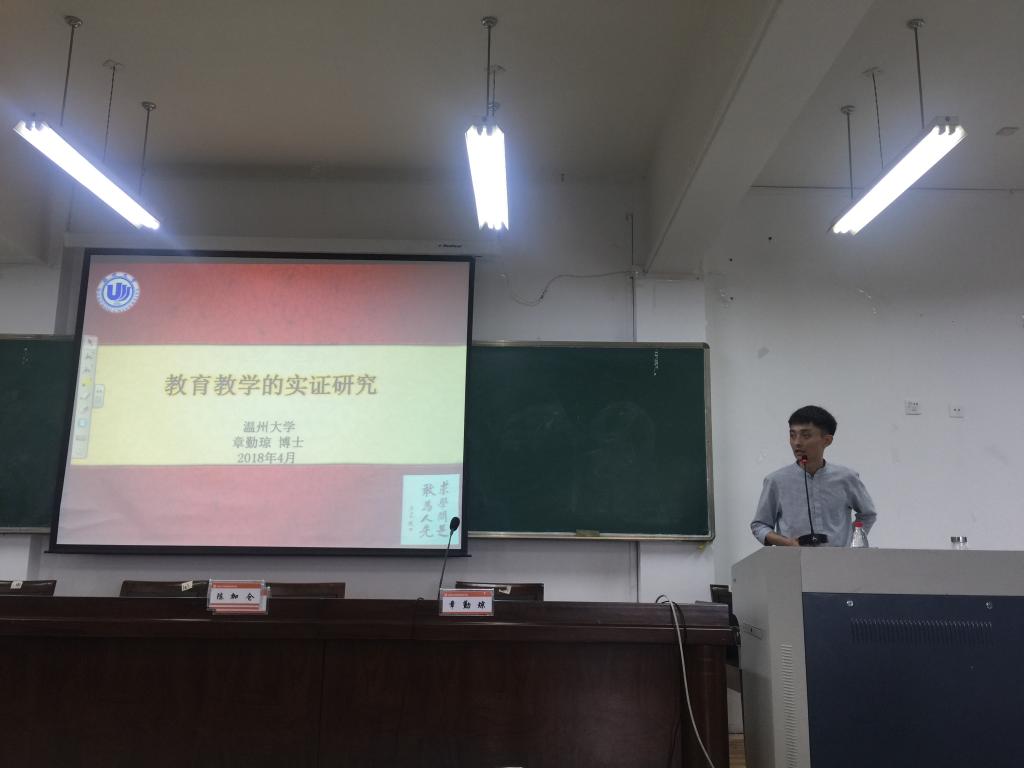 在开幕式之后,工作站负责人、williamhill官网小教系副主任章勤琼博士做了《教师如何做教育教学实证研究》的专题报告。他从研究问题的确定、相关文献的述评、理论框架的确定、研究数据的收集、研究结果的分析,给学员展示了一个具体的教育教学实证研究是如何开展的。这也为学员接下来两年的研修活动奠定了基调。