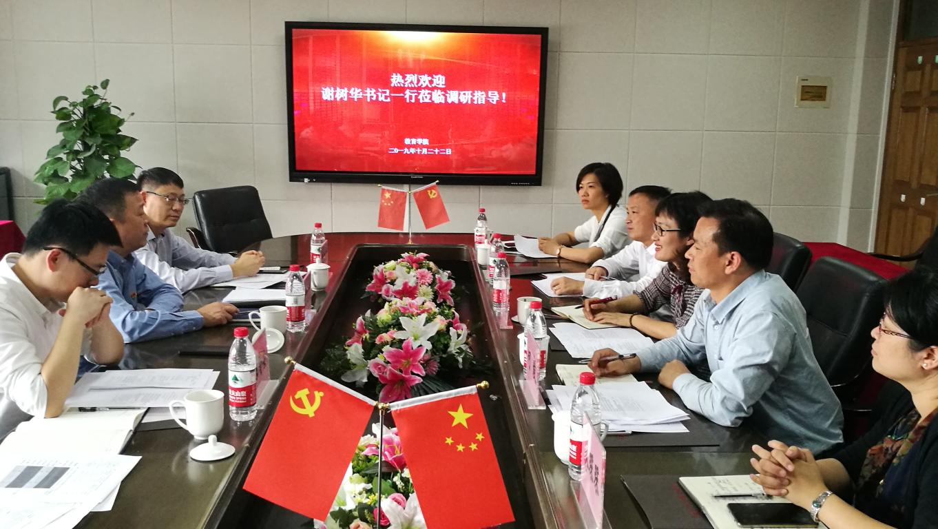 2019年10月22日下午,校党委书记谢树华、校办主任蔡联群、校办督办科科长陈赞安一行来我院开展申博工作调研。学院院长孙芙蓉、党委书记何毅、副院长叶新东、王志强、林琛琛、党委副书记彭小媚参加了此次会议。