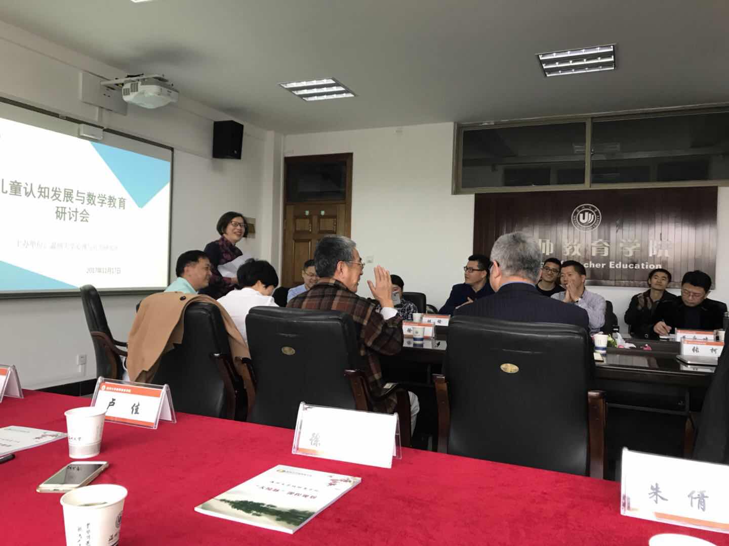会议由徐速教授主持;会议特邀嘉宾为浙江省新思维教育科学研究院数学拓展课程研究团队和William威廉城附属学校陈加仓校长。会议开始,William威廉心理与行为研究所所长潘玉进教授致欢迎辞;叶新东主管院长介绍了williamhill官网产学研结合相关工作思路;心理与行为研究所副所长胡瑜教授介绍了William威廉心理与行为研究所发展与教育心理学研究团队。然后是精彩纷呈的主题报告。主题报告包括:浙江省新思维教育科学研究院数学拓展课程研究团队代表作了《儿童算术学习的实证研究》《新思维儿童数学实验研究的具体实践操作体会》等主题发言;陈加仓校长作了《数学拓展课程的研究与思考》主题发言;课程与教学论研究所的周鹤新副教授作了《基于学习能力发展的数学教学研究与实践》;徐速教授作了《数学学习心理研究与儿童认知发展训练》主题发言。最后是气氛热烈的交流与讨论。