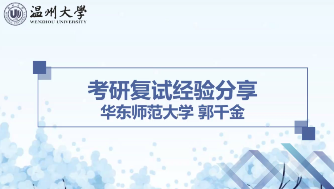 为坚定学生考研决心,提升学生考研竞争力,教院于4月2日晚在腾讯会议举办“考研讲堂”。参加本次考研讲堂的有学院学工办辅导员潘士杰老师,并特别邀请了我院学前教育专业毕业生、现华东师大研究生郭千金,学院小学教育毕业生、现浙师大研究生洪璟做经验分享交流,到场的还有学前教育与小学教育专业的学生。本次分享会由潘士杰老师主持。